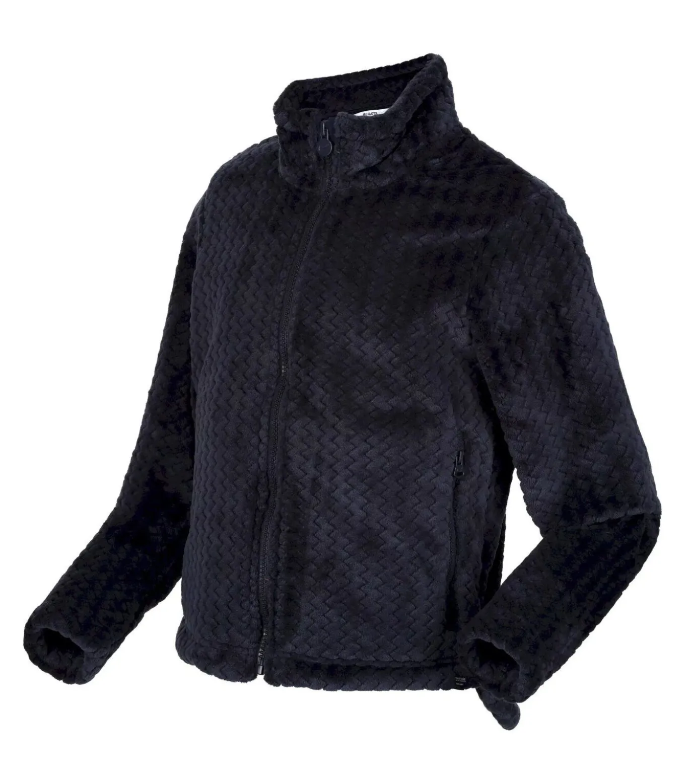 Deze productomschrijving beschrijft een kinder/kinder fleecejack van Regatta. Het jack heeft een golvend stofontwerp gemaakt van duurzaam en slijtvast polyester fleece materiaal. Het heeft lange mouwen met een opstaande kraag bij de hals. Voor het opbergen zijn er twee zijzakken met rits. De jas wordt gesloten met een rits over de hele lengte aan de voorkant. De zoom van de jas is gebogen en valt voor bedekking.