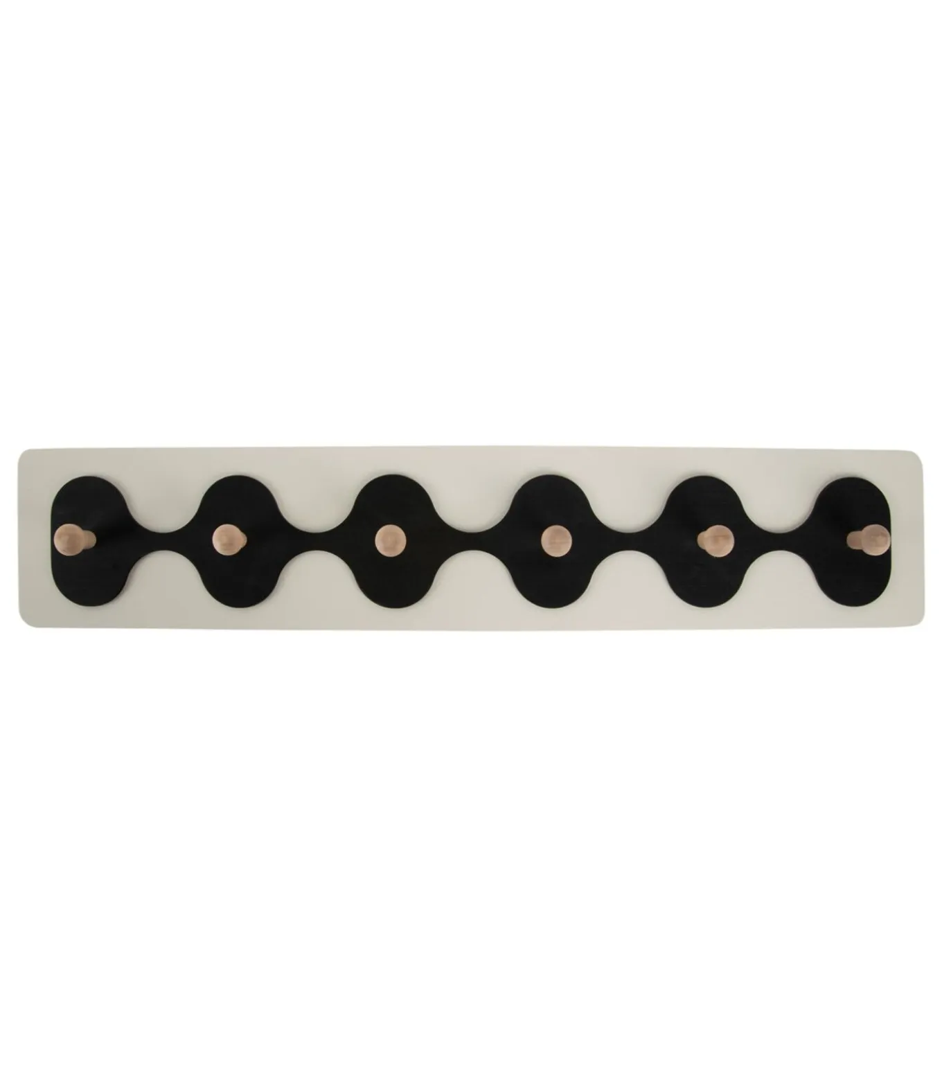 Kapstok Rizar – Present Time. Deze speelse kapstok van Present Time is niet alleen handig in de hal, maar ook perfect voor theedoeken in de keuken of handdoeken in de badkamer. Verkrijgbaar in twee maten en stijlvolle zwart–wit contrasten, met houten haakjes als warme finishing touch.