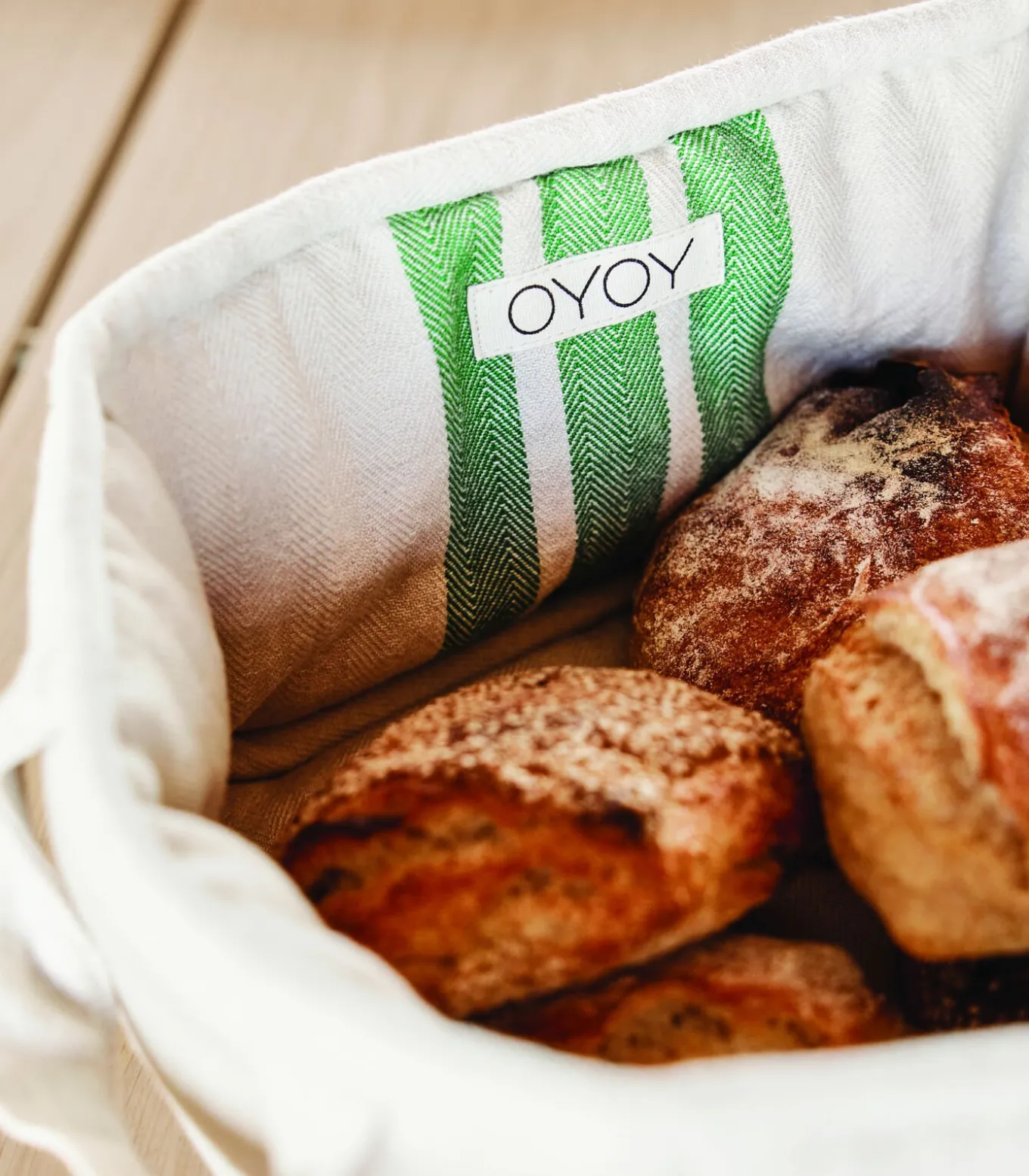 De Linu Broodmand is een stijlvolle toevoeging aan de Linu serie. Hij is gemaakt van biologisch katoen met een Oeko–Tex polyester vulling en heeft een visgraatmotief en een eenvoudig ontwerp met een variatie van verschillende strepen, wat een vleugje charme toevoegt aan je tafel.