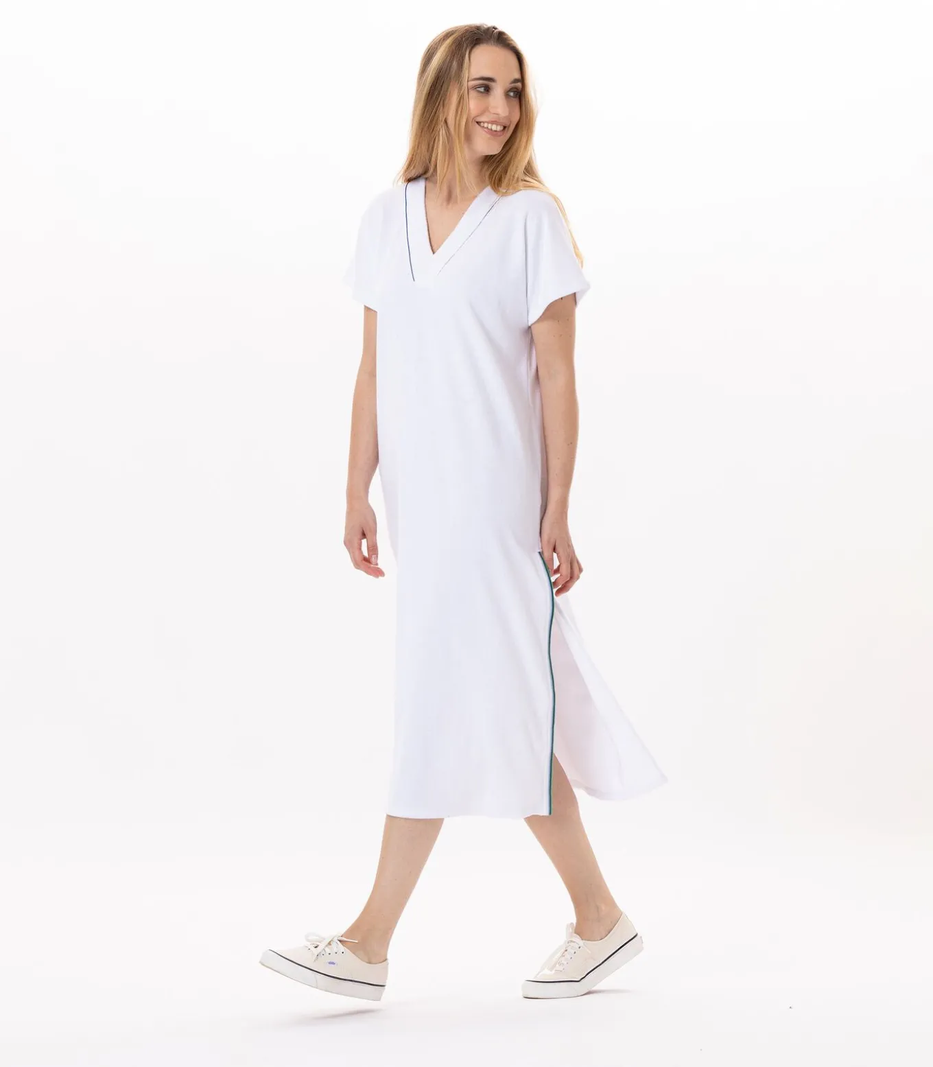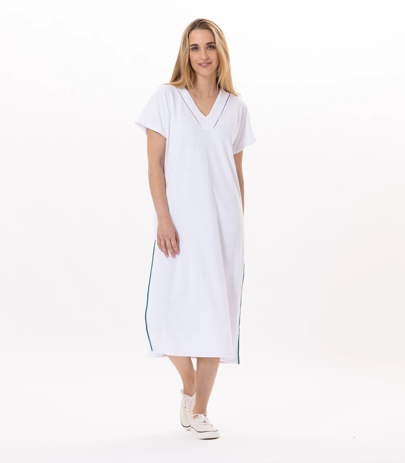 Hoe draag je de VALENSOLE 941 lange badstofjurkDe lange jurk VALENSOLE 941 straalt ontspannen elegantie uit.