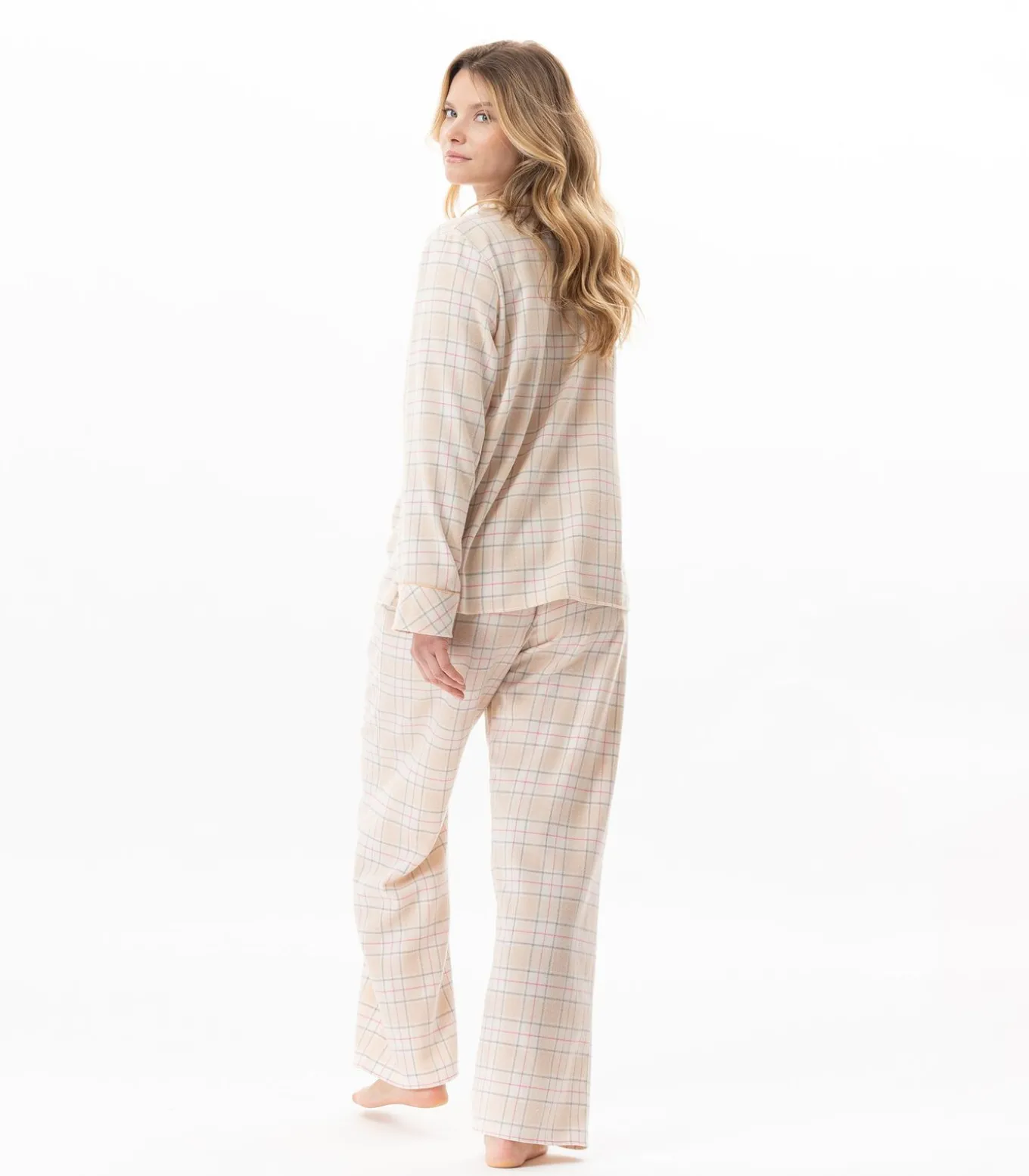 Al het comfort van geborstelde flanel, een warme, zachte en aangename stof, is hier verkrijgbaar in de vorm van een pyjama met knoopjes.