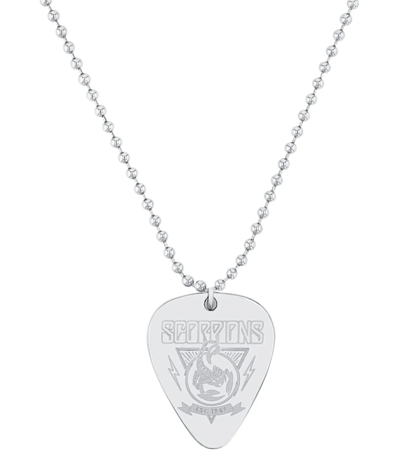 Amor Echtschmuck presenteert met trots een exclusieve samenwerking met de legendarische rockband Scorpions ter gelegenheid van hun 60–jarig podiumjubileum. Het resultaat is een expressieve sieradencollectie die de geest van de band combineert met stijlvol design – voor echte fans en rockliefhebbers. Deze unisex–ketting is een echte allrounder, want de plectrumhanger kan zelfs worden gebruikt om de gitaarsnaren te bespelen. De 50+5 cm lange bolletjesketting is gemaakt van hoogwaardig roestvrij staal. De hanger kan individueel worden gegraveerd, waardoor hij echt uniek is. Een speciaal ontworpen sieradendoosje is geschikt als cadeau voor mannen en vrouwen.