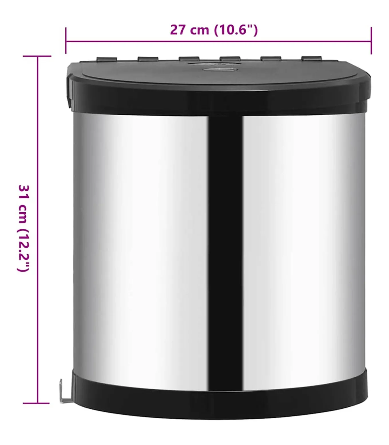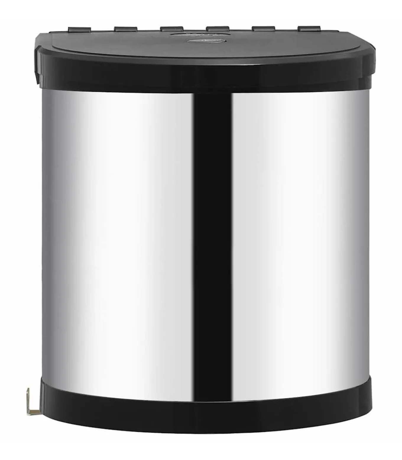 De buitenkant van de vuilnisbak is gemaakt van roestvrij staal en hij heeft een kunststof binnenemmer die uitneembaar is, waardoor het vervangen van vuilniszakken heel eenvoudig is. Deze ruimtebesparende en duurzame afvalemmer kan dankzij een ontwerp met bodemmontage onder de gootsteen worden bevestigd, waardoor hij aan het zicht onttrokken wordt. Bij het openen van het kastdeurtje gaat het deksel van de afvalbak automatisch open en zodra het kastdeurtje gesloten wordt, gaat deze automatisch dicht. De prullenbak voorkomt zo onaangename geuren en ongedierte.