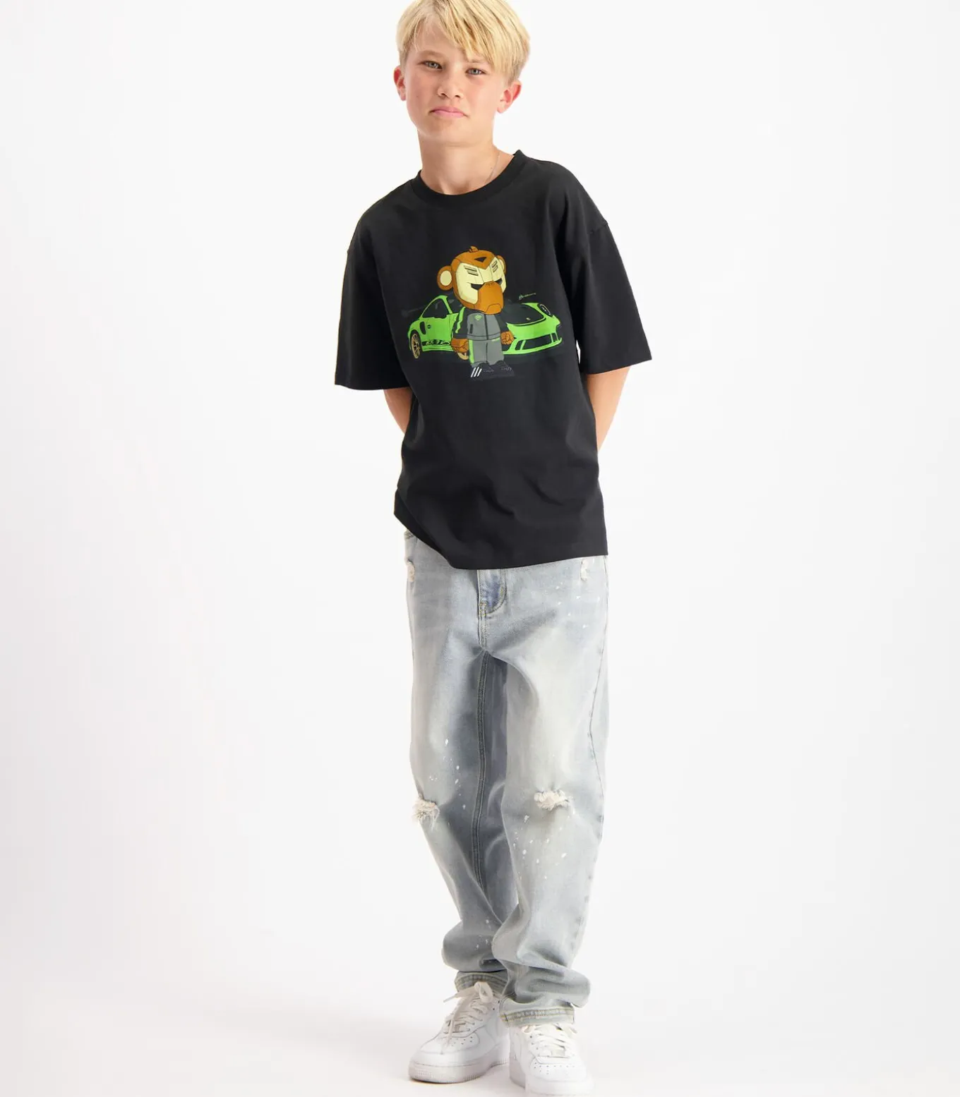 100% katoen Oversized pasvorm Ronde hals Street–cool karakter in BLCK BNNS–uitrusting Slanke groene sportwagenprint op de voorkant