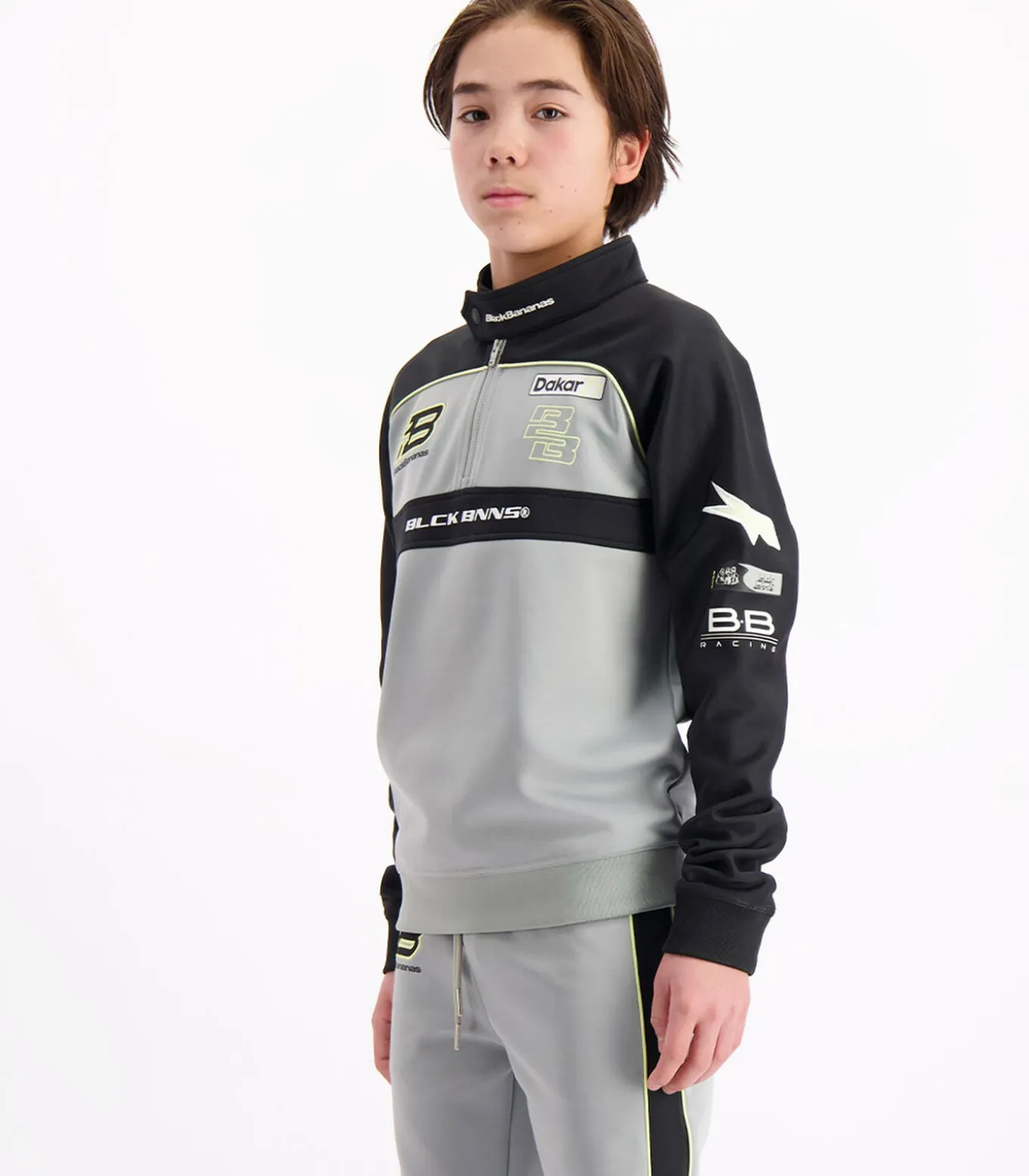 100% Polyester Normale pasvorm Halve ritssluiting met opstaande kraag Black Bananas–branding op de borst, mouwen en kraag Dakar–geïnspireerde racepatches voor een gedurfde motorsport–esthetiek Geribbelde manchetten en zoom Kangoeroezak Kan worden gecombineerd met de Race Trackpants