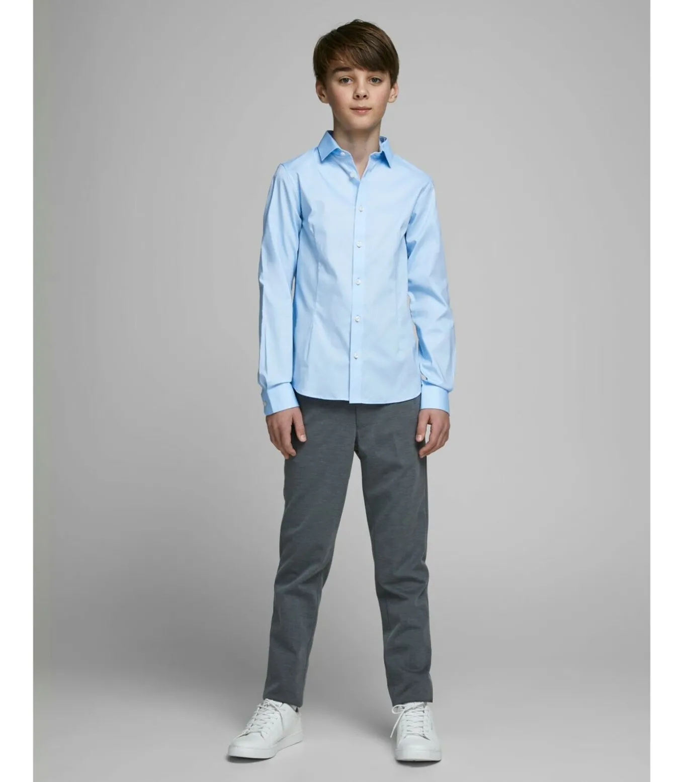 BOYS’ JACK&JONES JUNIOR SHIRT – Jongens overhemd met lange mouwen – Ronde zoom – Klassieke kraag – Voor– en achterpijltjes – Manikin meet 158 cm en draagt maat 152 – JACK & JONES JUNIOR 98% Katoen, 2% Elastane Machinewasbaar op 30 °C Gebruik geen bleekmiddel Droog op laag vuur Strijkset op laag vuur. Maximale temperatuur: 100 °C Droge was (behalve trichloorethyleen) Hang op om te drogen.