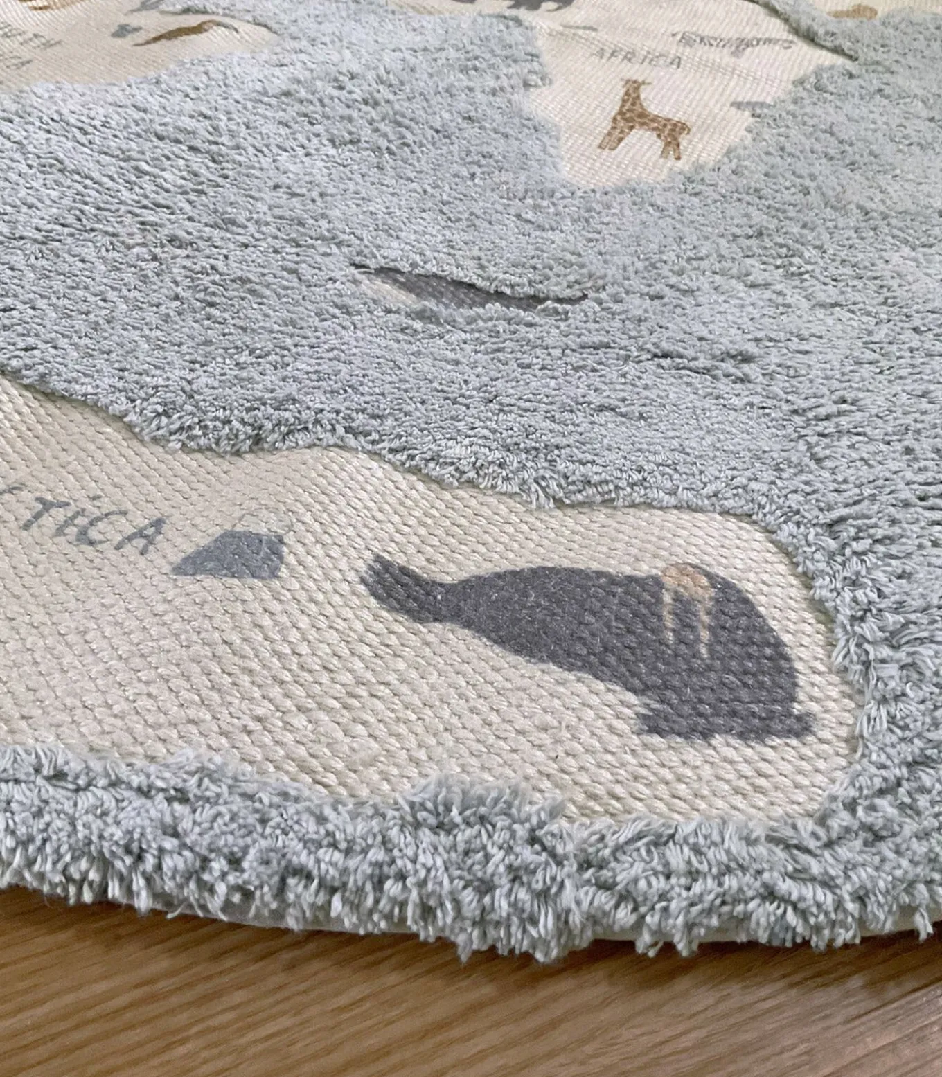 Een speelse en leerzame mat met een zijdezachte touch, perfect voor kleine ontluikende ontdekkingsreizigers. AFKLiving wasbare katoenen vloerkleden worden gemaakt in India. Ze zijn met de hand geweven door onze ambachtslieden. Deze tapijtproductie is milieuvriendelijk met behulp van natuurlijke materialen zoals katoen na een niet–toxisch verfproces.