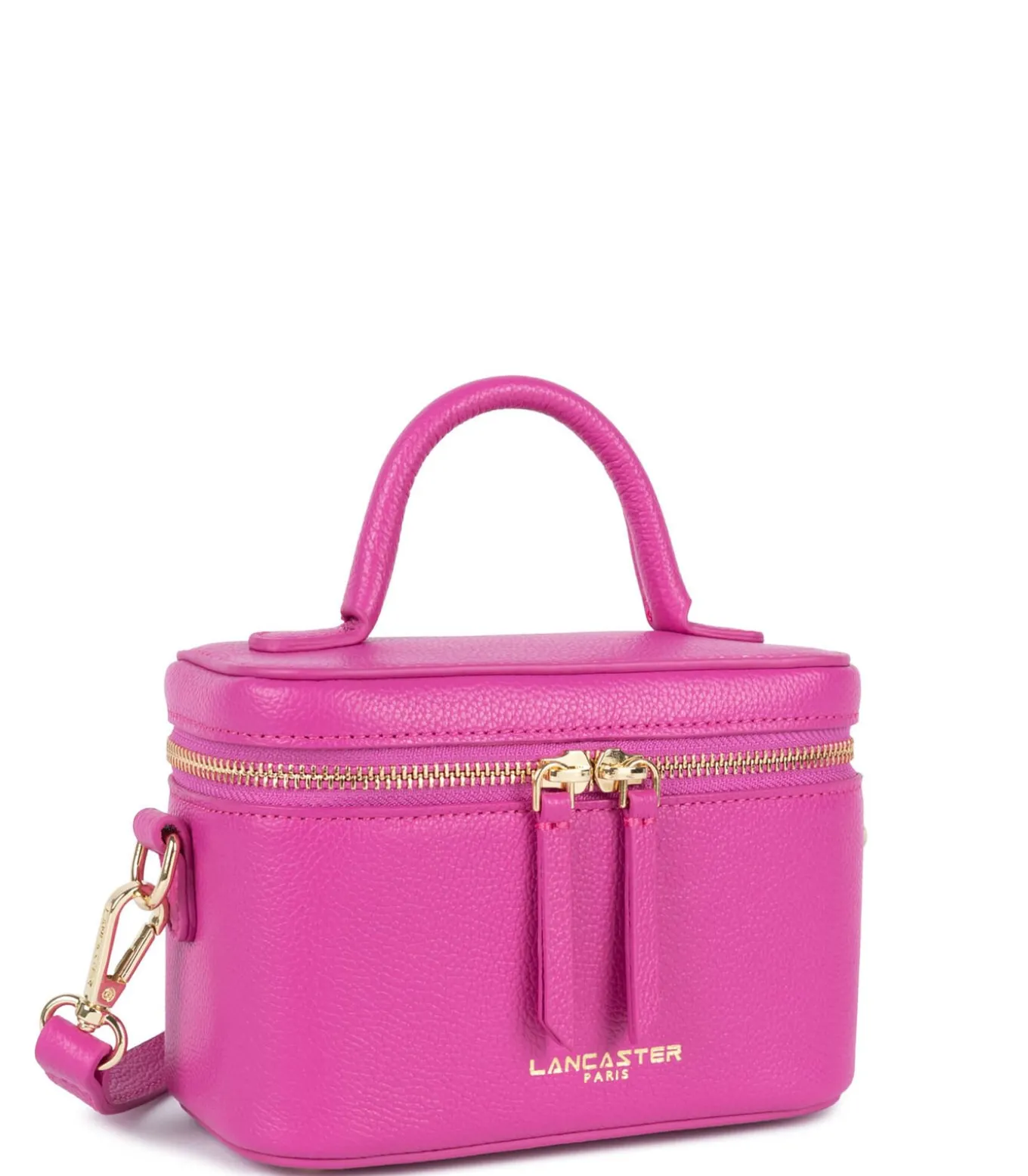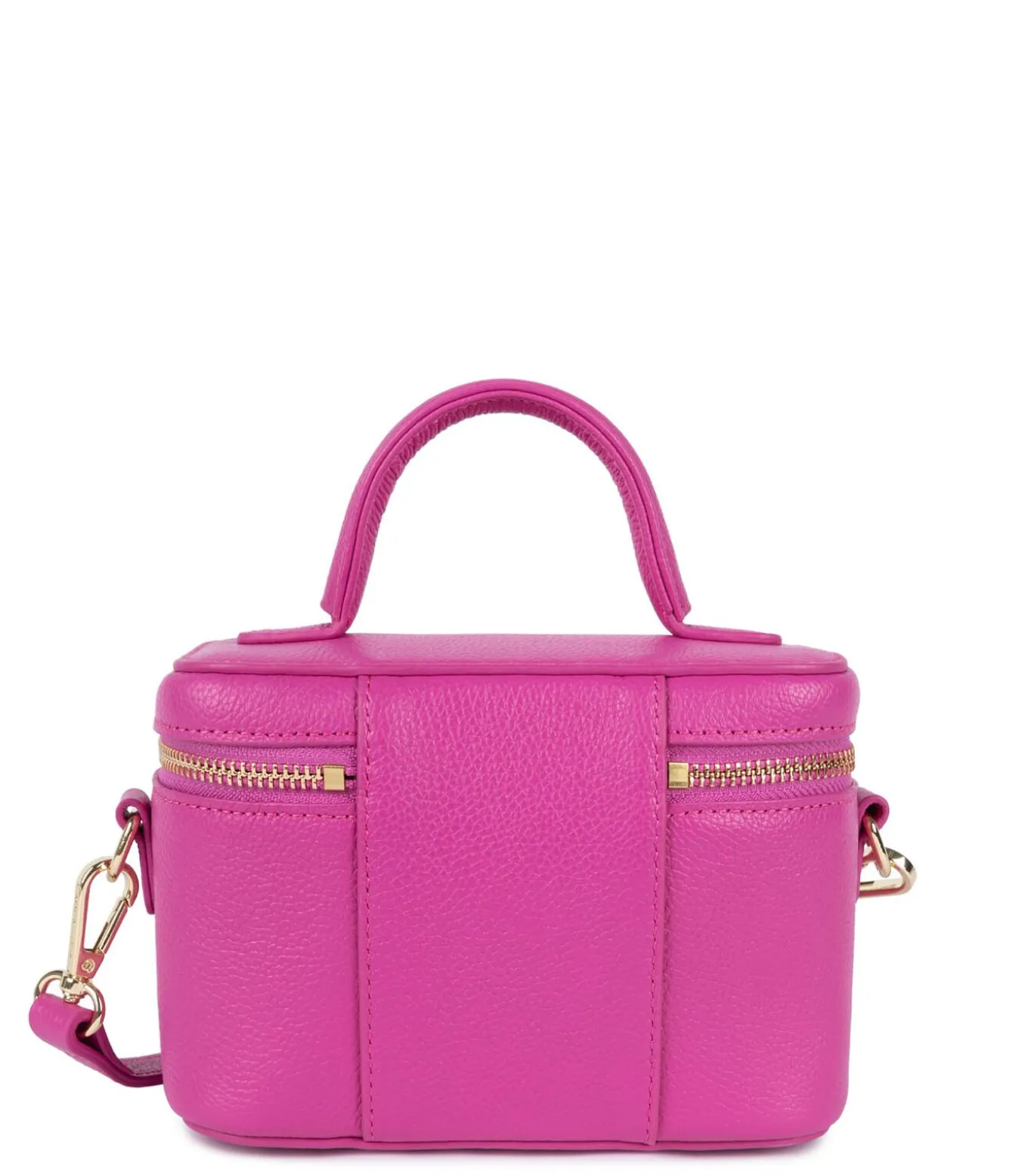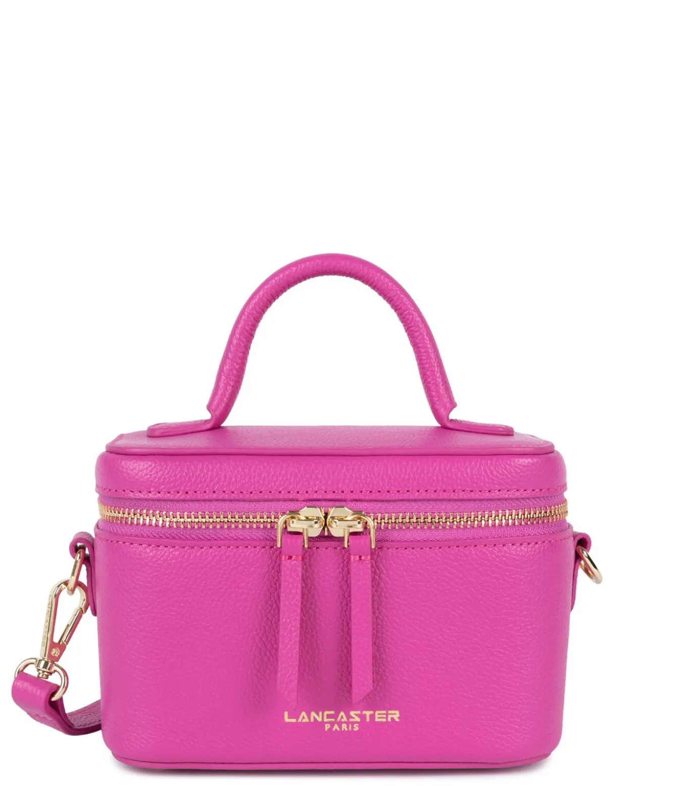 Deze kleine vanity tas is gemaakt van kalfsleer met een korrelstructuur. Hij heeft een hoofdvak met een spiegel, een eenvoudig binnenvak en twee lippenstift houders. De tas kan met de hand, over de schouder of kruisdragend worden gedragen.