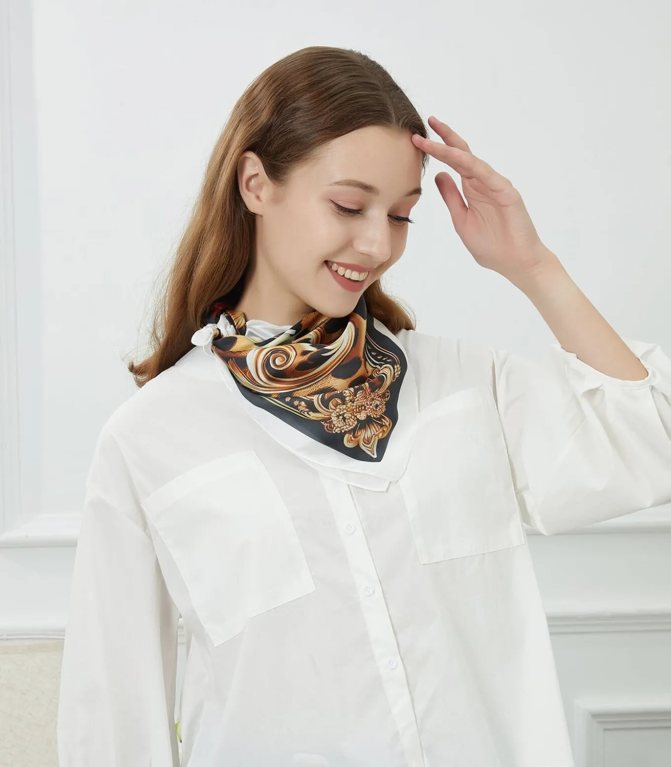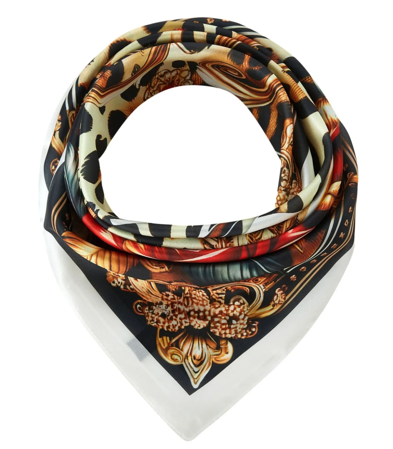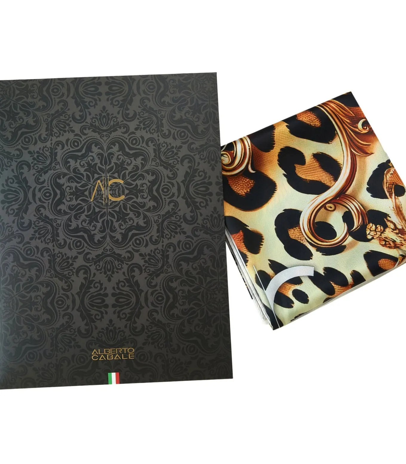 Beschrijving: De sjaal “Roses et Léopard” van Alberto Cabale is een gedurfde fusie van wilde natuur en klassieke elegantie. Dit luxe ontwerp heeft een achtergrond met luipaardprint, verrijkt met weelderige rode rozen en gouden ornamenten. Gemaakt van 100% zijde, biedt deze 60×60 cm carré een zachte textuur en een uitzonderlijke glans, perfect om een vleugje verfijning aan elke outfit toe te voegen. De zorgvuldige details en levendige kleuren maken deze sjaal niet alleen een accessoire, maar een pronkstuk van elke ensemble.Samenvatting:Afmeting: 60×60 cmMateriaal: 100% zijdeMotief: Luipaardprint met rozen en gouden ornamentenDominante kleur: Goud en roodCadeauverpakking: Zorgvuldig verpakt in een luxe bedrukte doos of cadeautasje, is deze sjaal klaar om als cadeau te geven en belooft de ontvanger te betoveren.