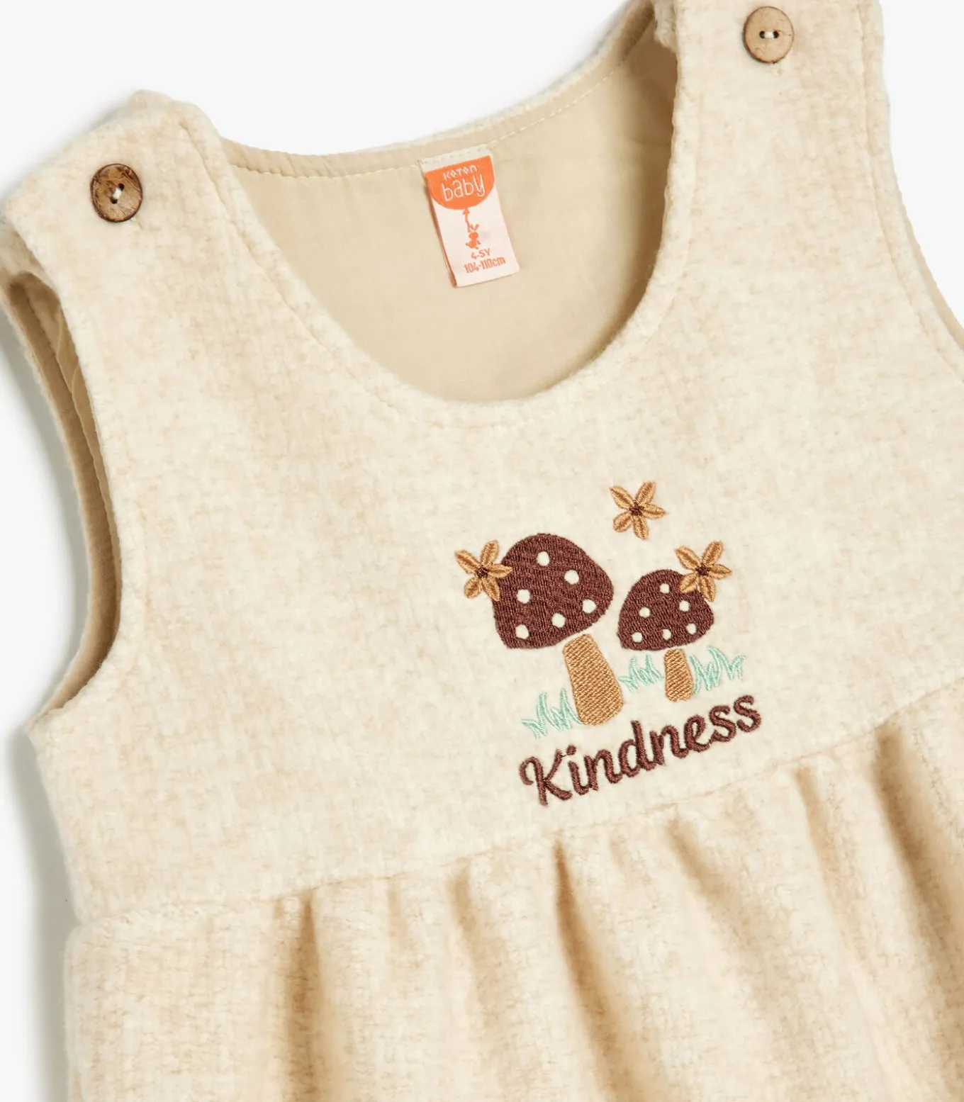Bci–katoen Zak Gedetailleerd 3D Paddestoel Normaal Vorm A Appliqué dubbele zak Knielengte Mouwloos Korte mouw Ronde kraag Jurk