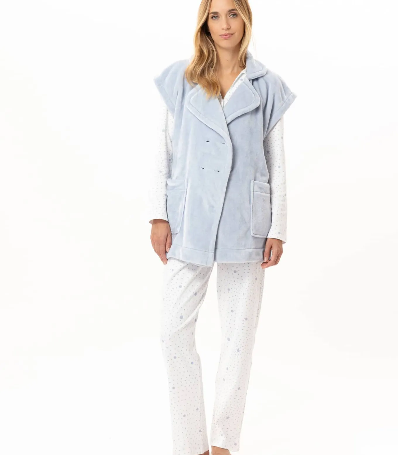 Korte mouwen jasje met knopen van pluche flanel ESSENTIEL H76A
