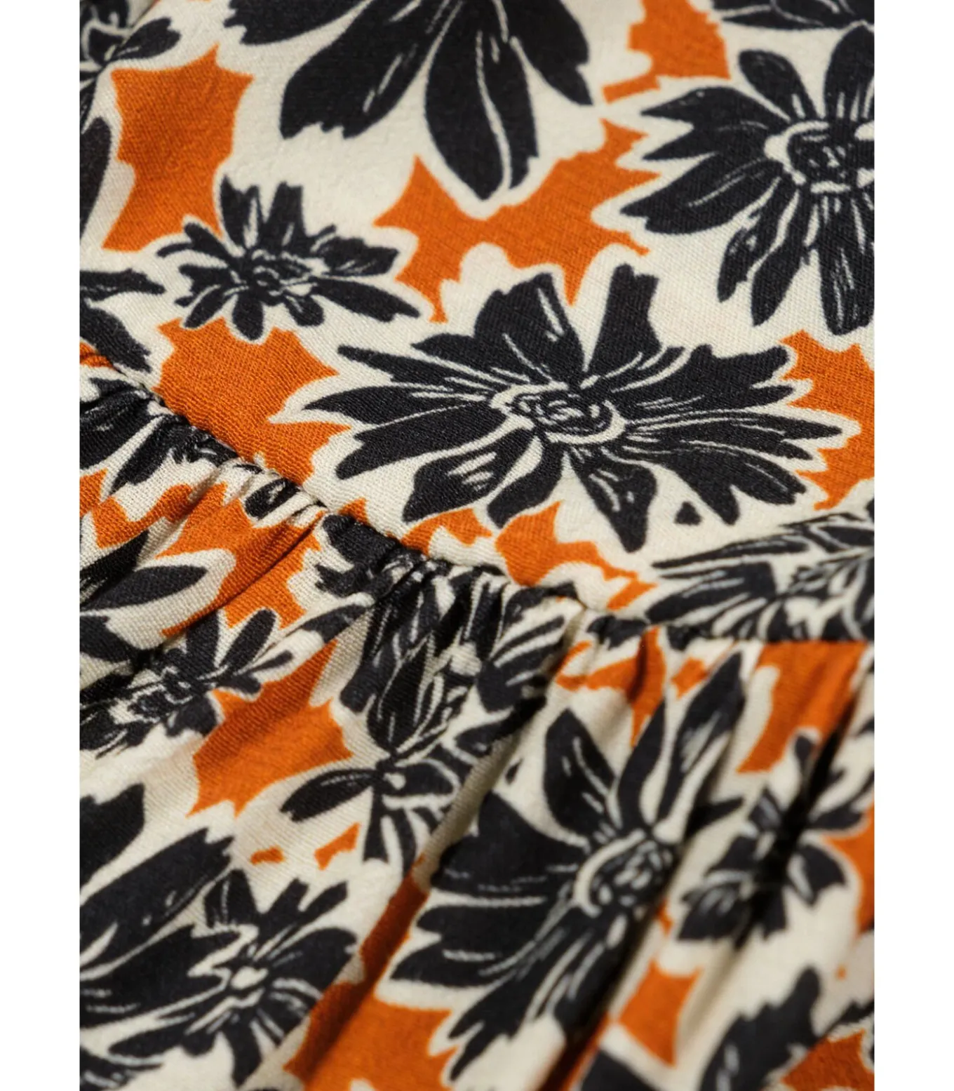 Geplooid aan de voorkant en voorzien van een zeer mooie print van bloemen in zwart en bruin, deze jurk is trendy, elegant en origineel. Verzekerde verliefdheid!