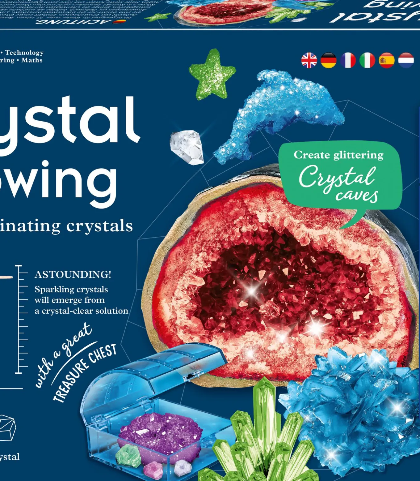 Kosmos Kristallen Experimenten Set – Wetenschap speelgoed voor kinderenMet de Kristallen Experimenten Set van Kosmos ontdek je de magische wereld van kristallen! Deze set laat jonge onderzoekers vanaf 10 jaar zelf schitterende kristallen kweken in allerlei kleuren en vormen. Volg de duidelijke instructies en zie hoe je eigen kristallen groeien, gipsfiguren veranderen in glinsterende kunstwerken en zelfs een echte kristalgrot ontstaat.De set bevat alles wat je nodig hebt om direct aan de slag te gaan: kristalzout, kleurstoffen, gipsvormen, pipet en een kleurrijke handleiding. Tijdens het experimenteren leer je niet alleen hoe kristallen ontstaan, maar ook hoe je hun groei kunt beïnvloeden. Zo wordt wetenschap een sprankelend avontuur in je eigen kamer!Extra informatieVoor kinderen vanaf 10 jaarInclusief alle benodigdheden en duidelijke handleidingStimuleert creativiteit en wetenschappelijk denkenPerfect cadeau voor nieuwsgierige onderzoekers