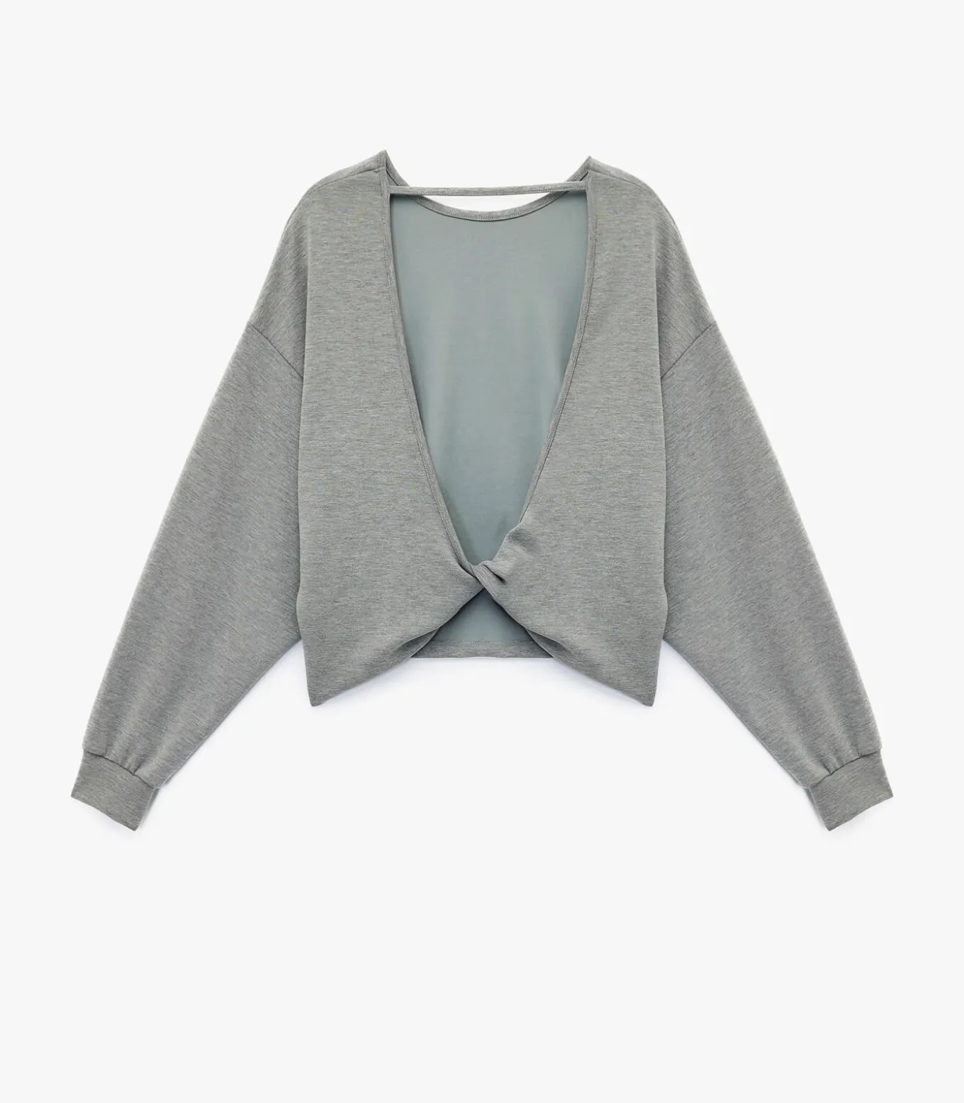 Koton Modal fabric wide round neck long sleeve back cut–out sweatshirt.