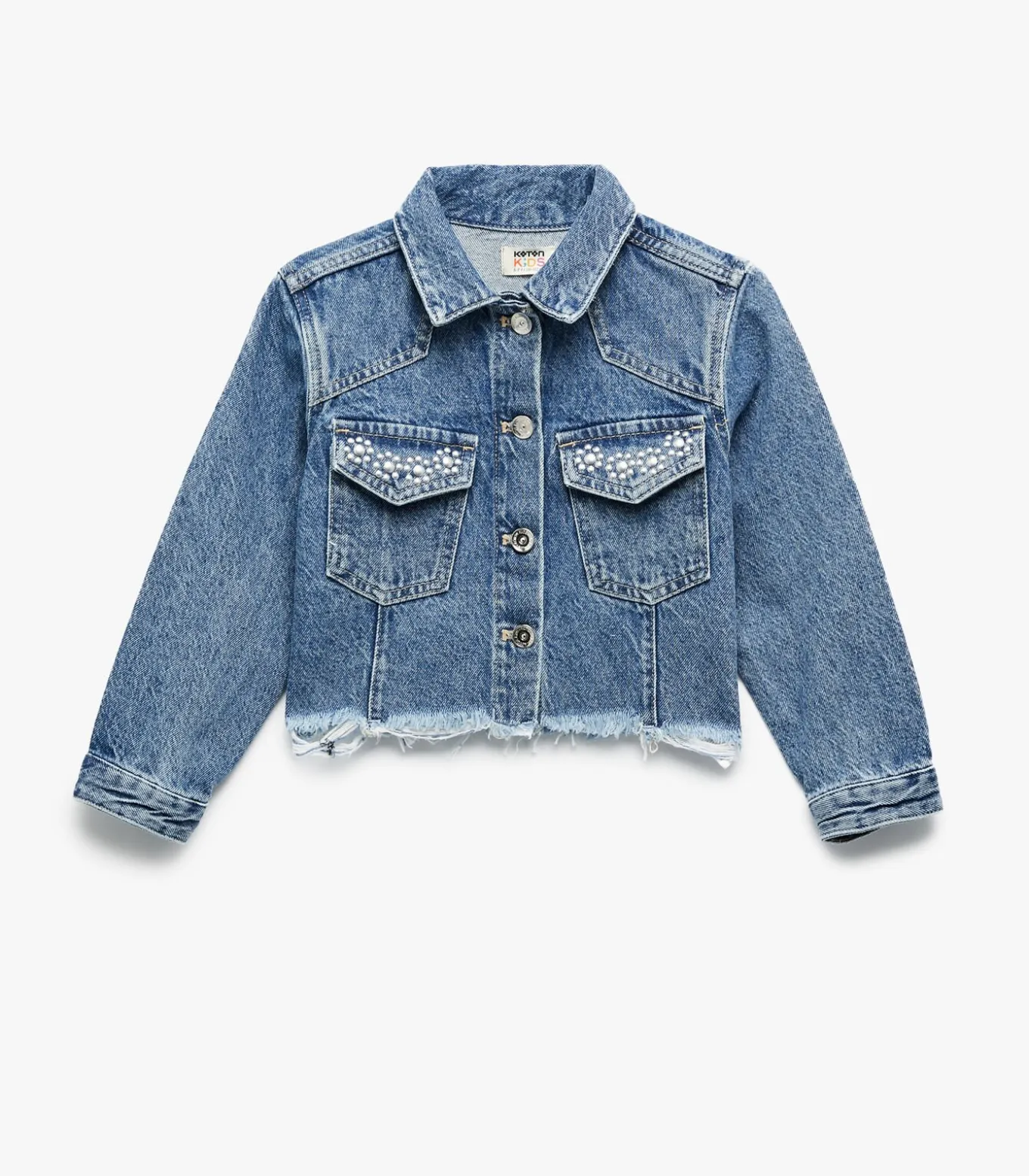 Koton Long sleeve stone detail pocketed cotton jean jacket.