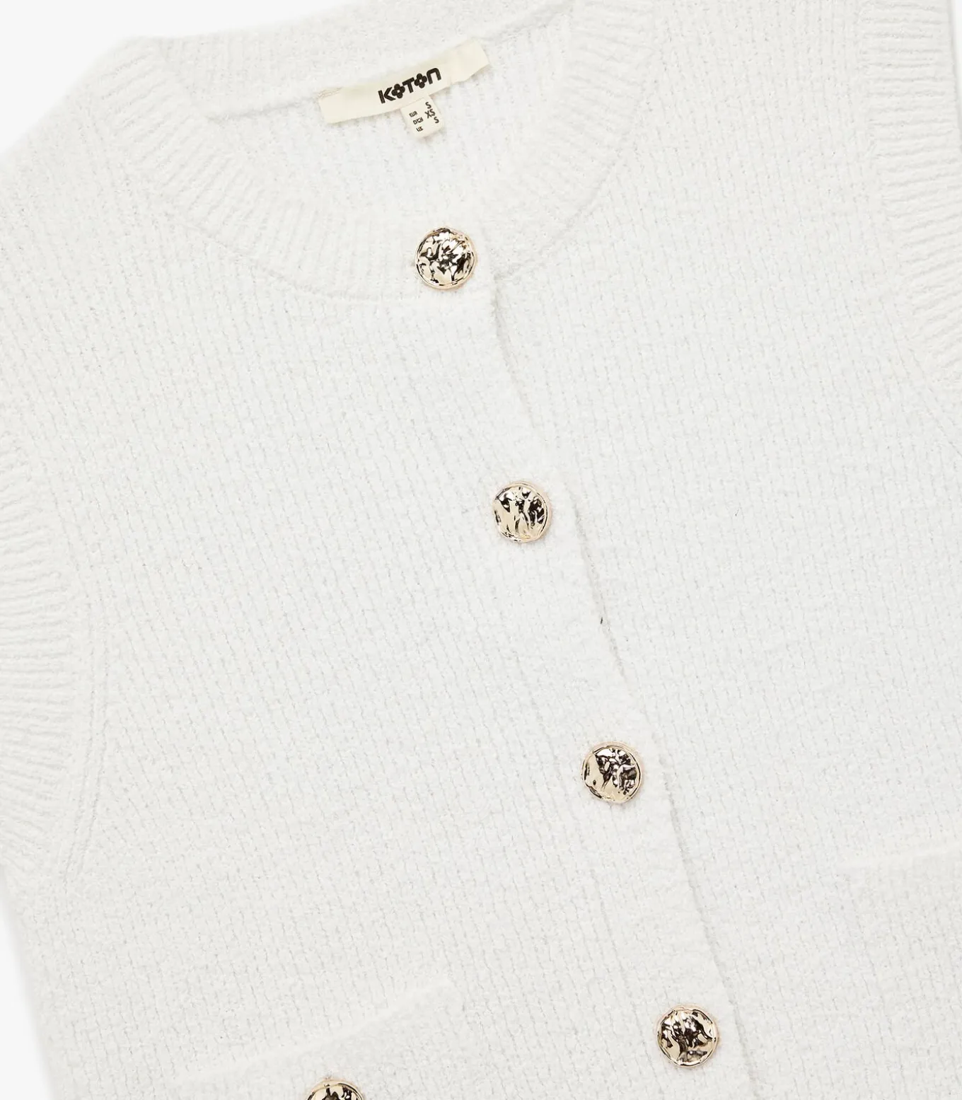 Koton Gold button detail pocketed sleeveless crew neck knitted vest.