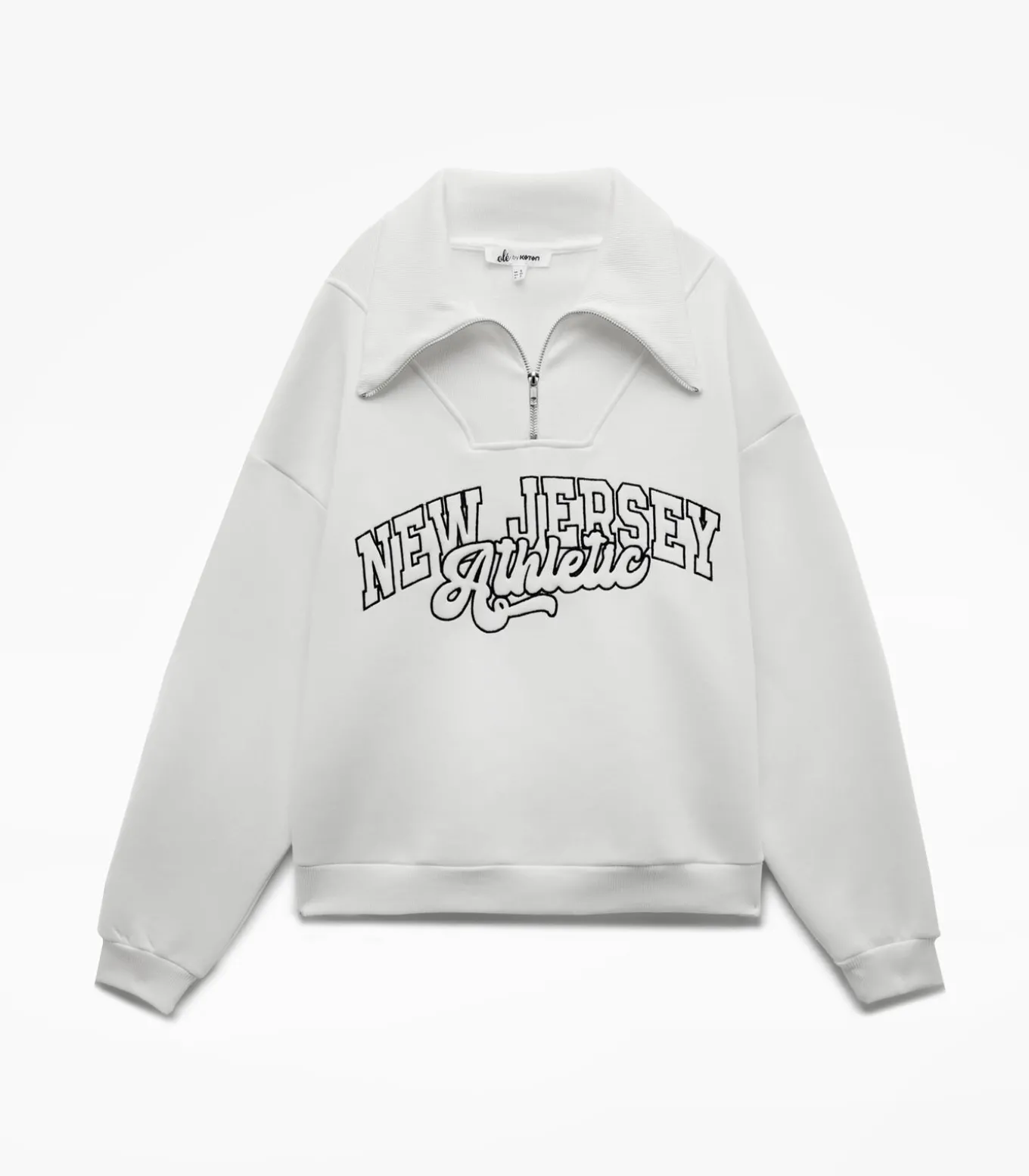 Koton Soft interior long–sleeved half–zip embroidered oversized sweatshirt.