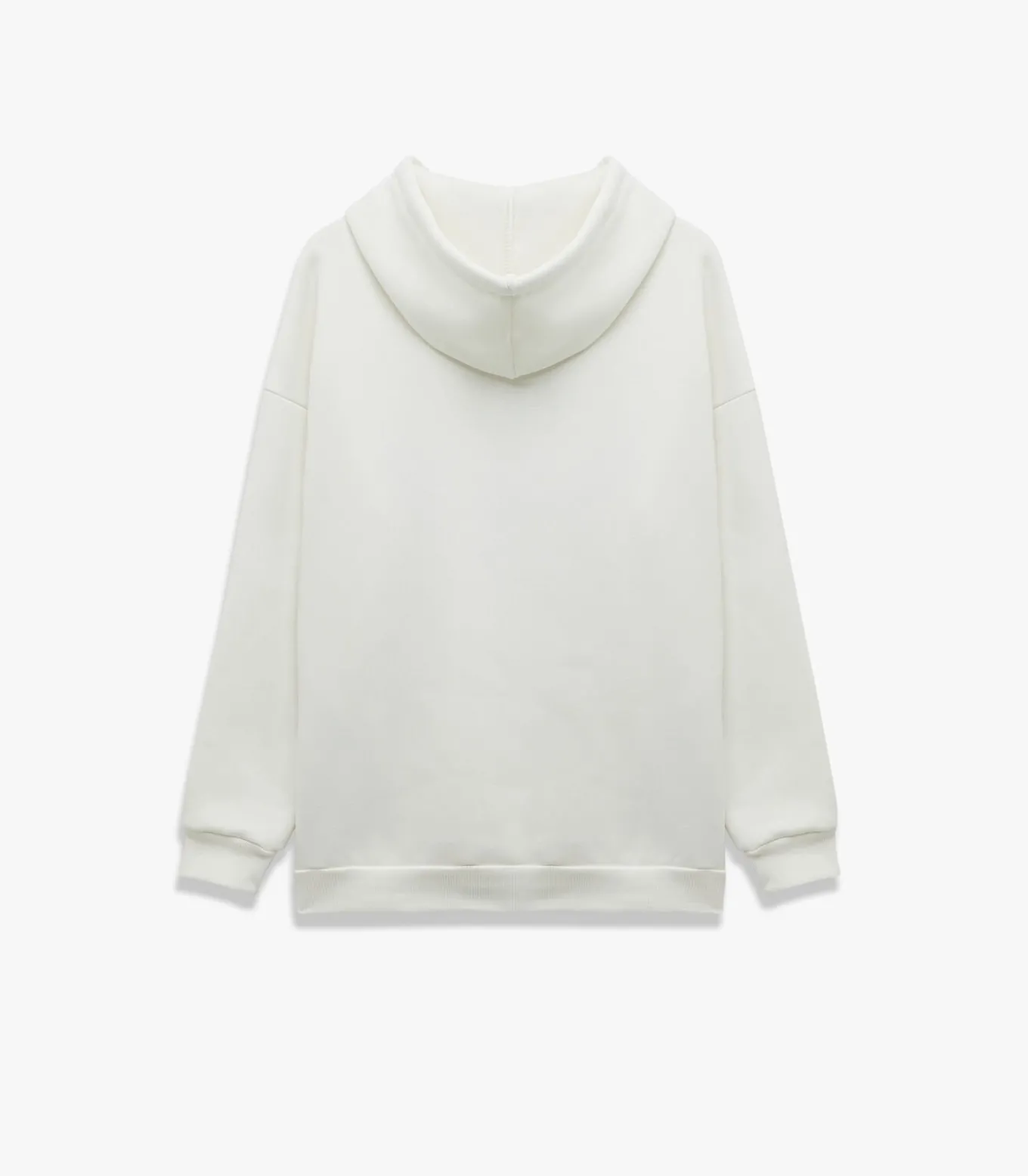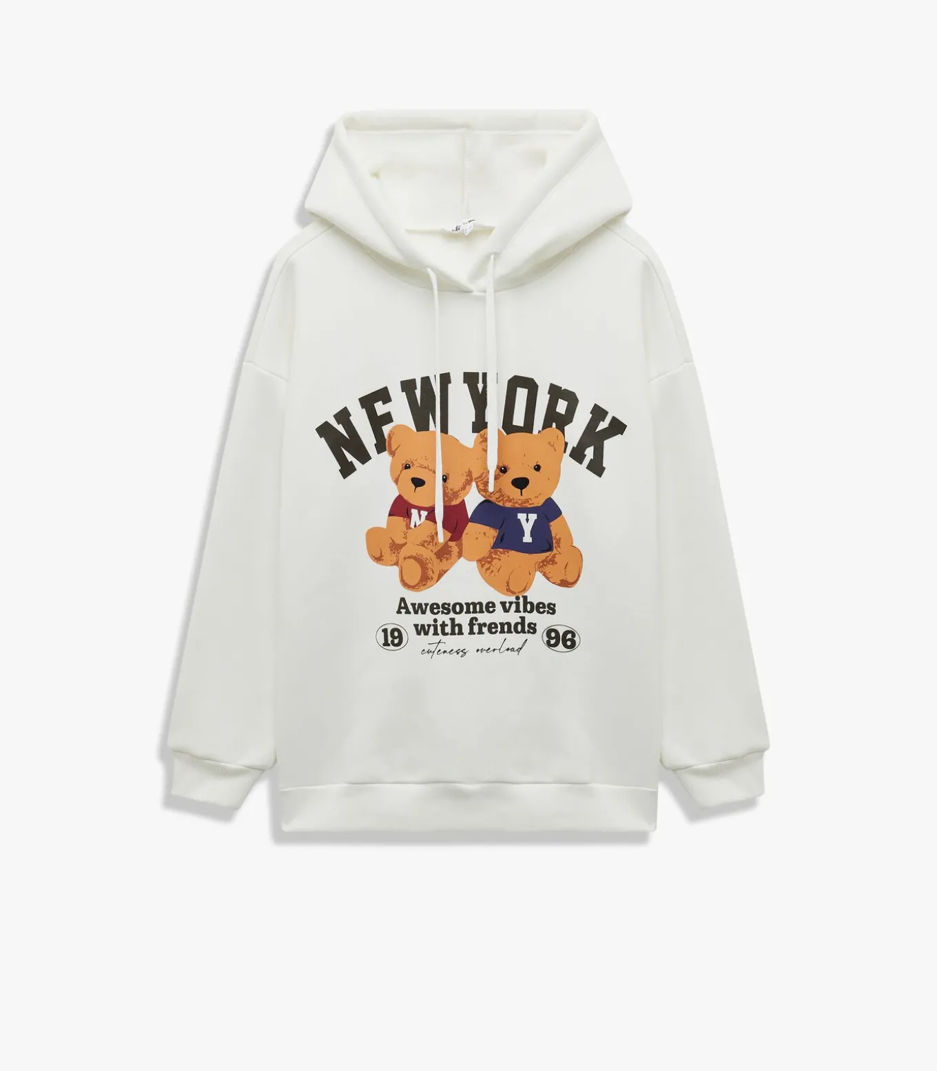 Koton Bear–printed soft interior hooded oversized sweatshirt.
