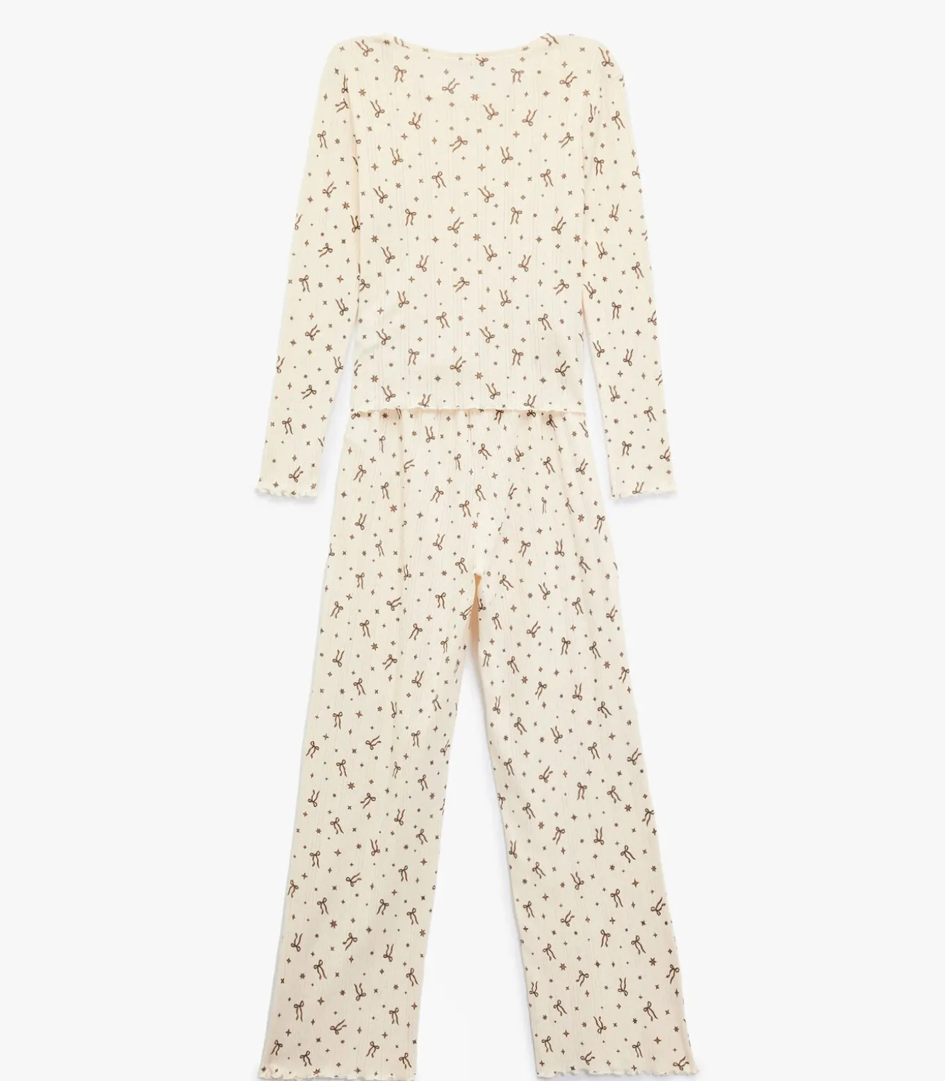 Koton Cotton long sleeve crew neck bow detail pajama set.