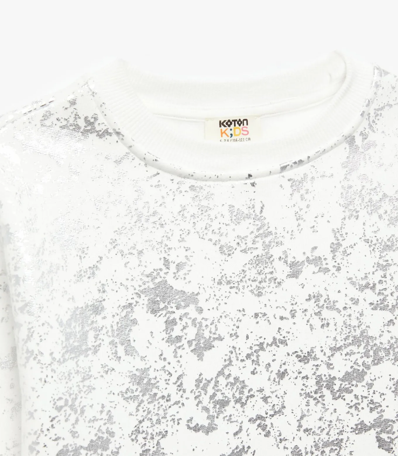 Koton Long sleeve crew neck patterned soft interior sweatshirt.
