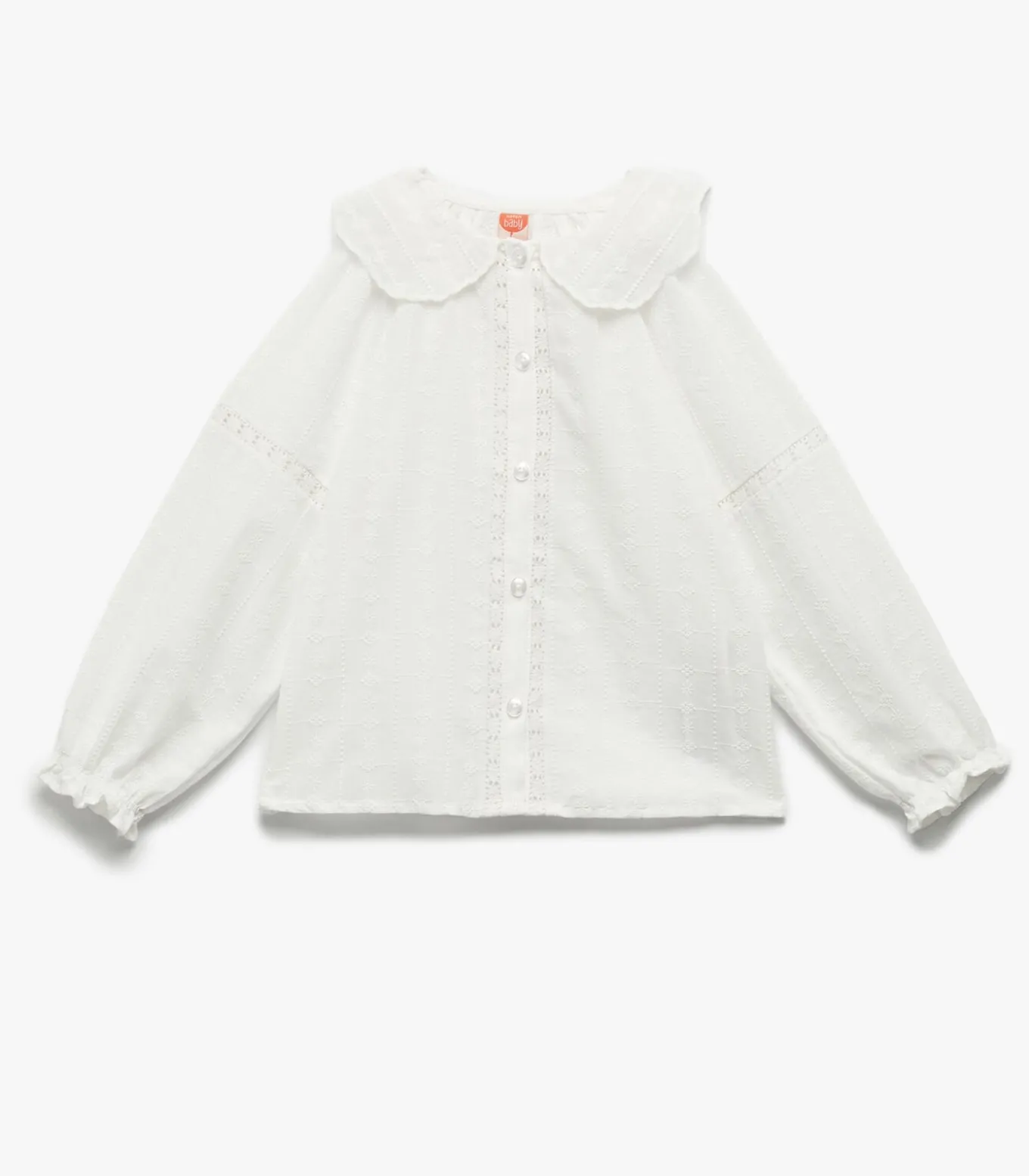 Koton Cotton buttoned long sleeve peter pan neck shirt.