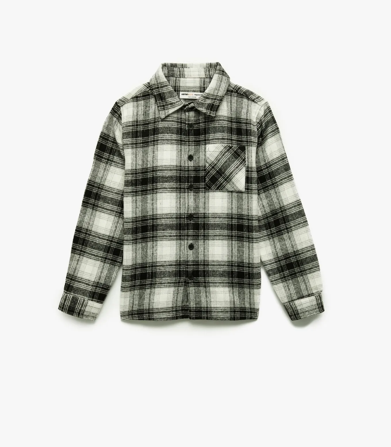 Koton Long sleeve buttoned classic neck plaid shirt.