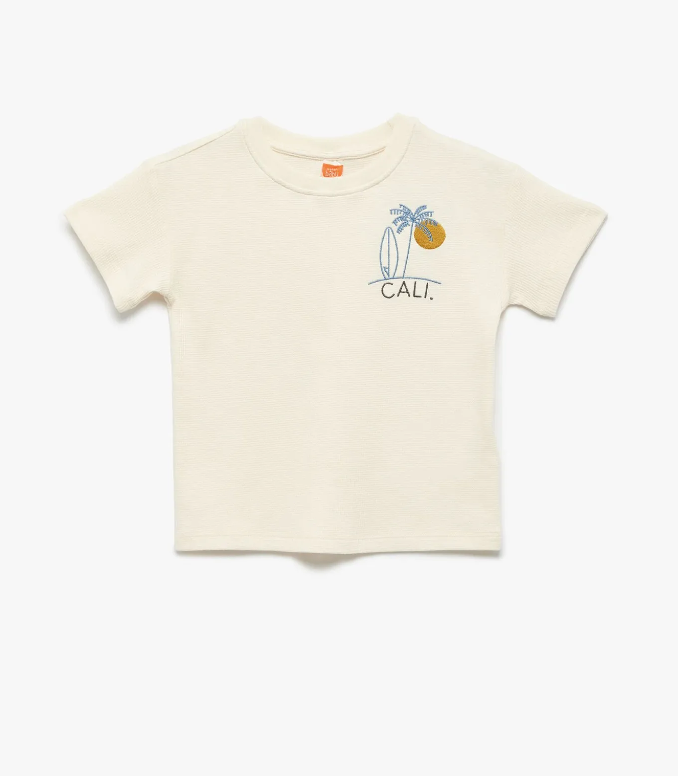Crew neck short sleeve cotton printed t–shirt with summer theme.