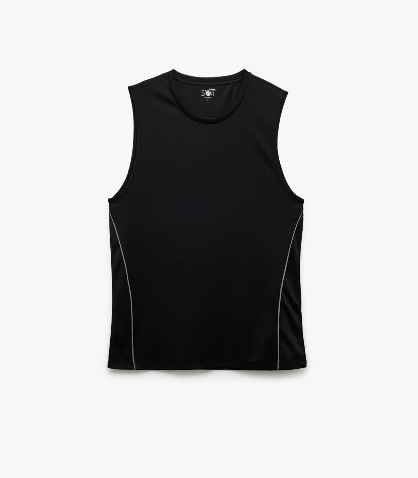 Sleeveless crew neck oversized stripe detail sport tank top.