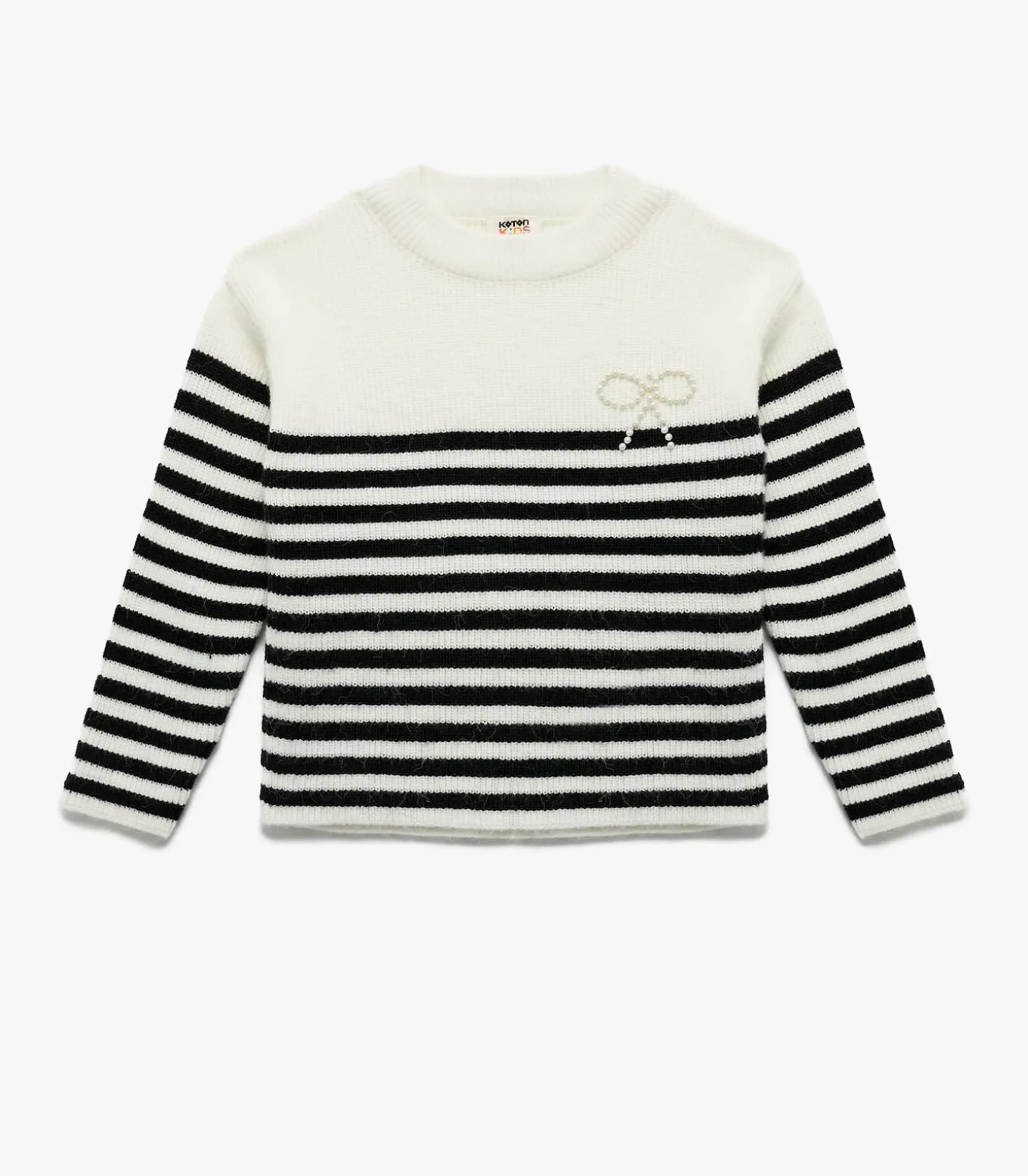 Koton Long sleeve crew neck bowtie detail striped tricot sweater.