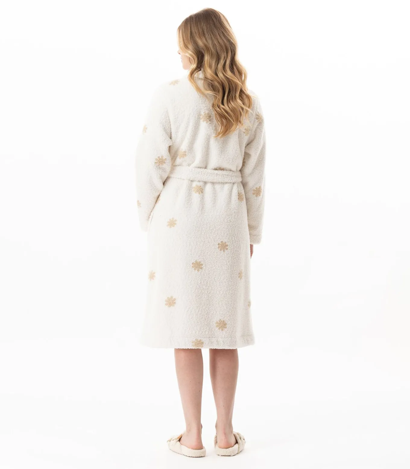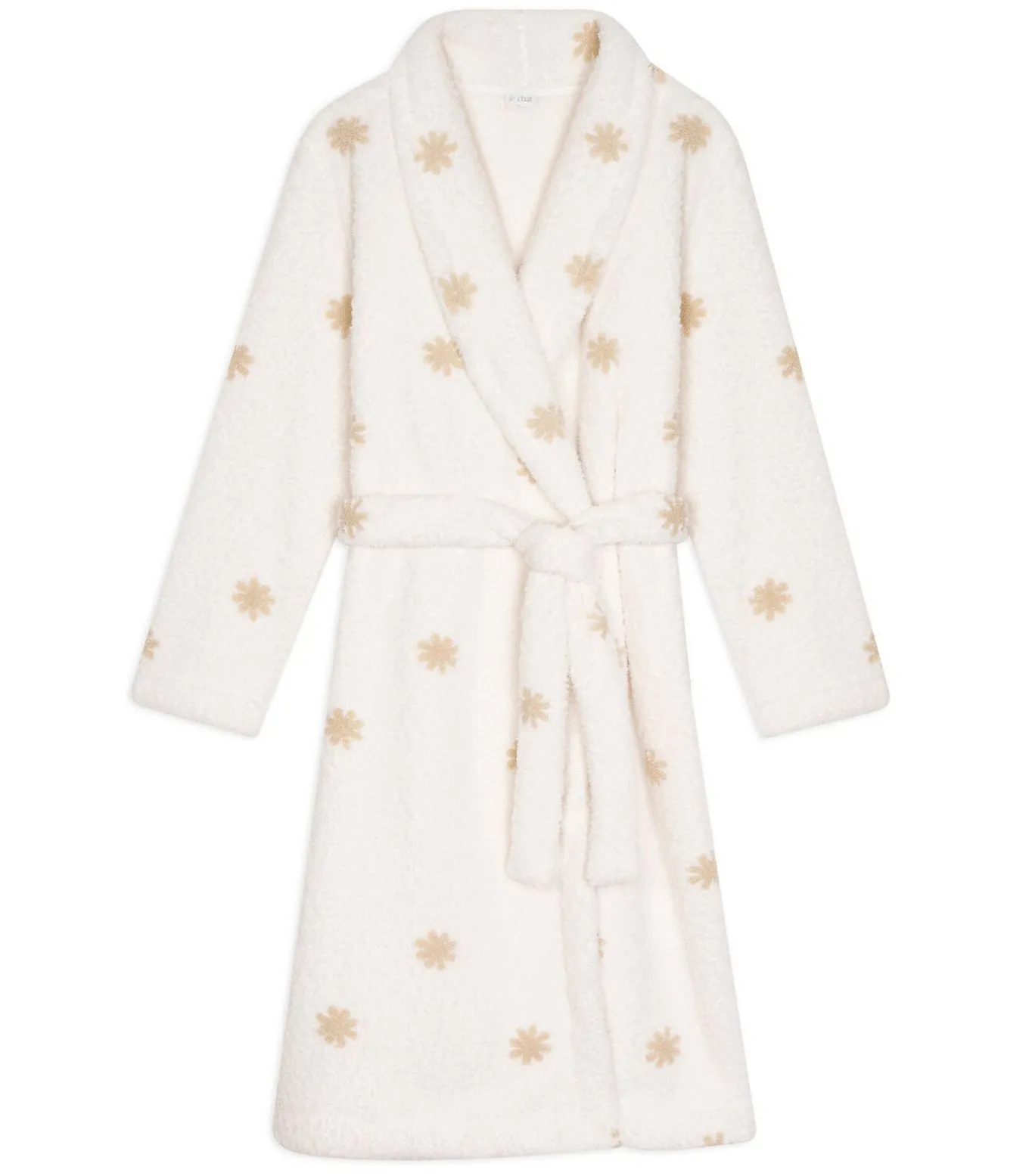 Bij LE CHAT draait de winter om zachtheid en comfort. Fijn geborduurde sterren sieren onze onmisbare wikkelbadjas, die dit seizoen terugkeert in een ultrazacht materiaal, ontwikkeld met onze gespecialiseerde partner in de Loirestreek.