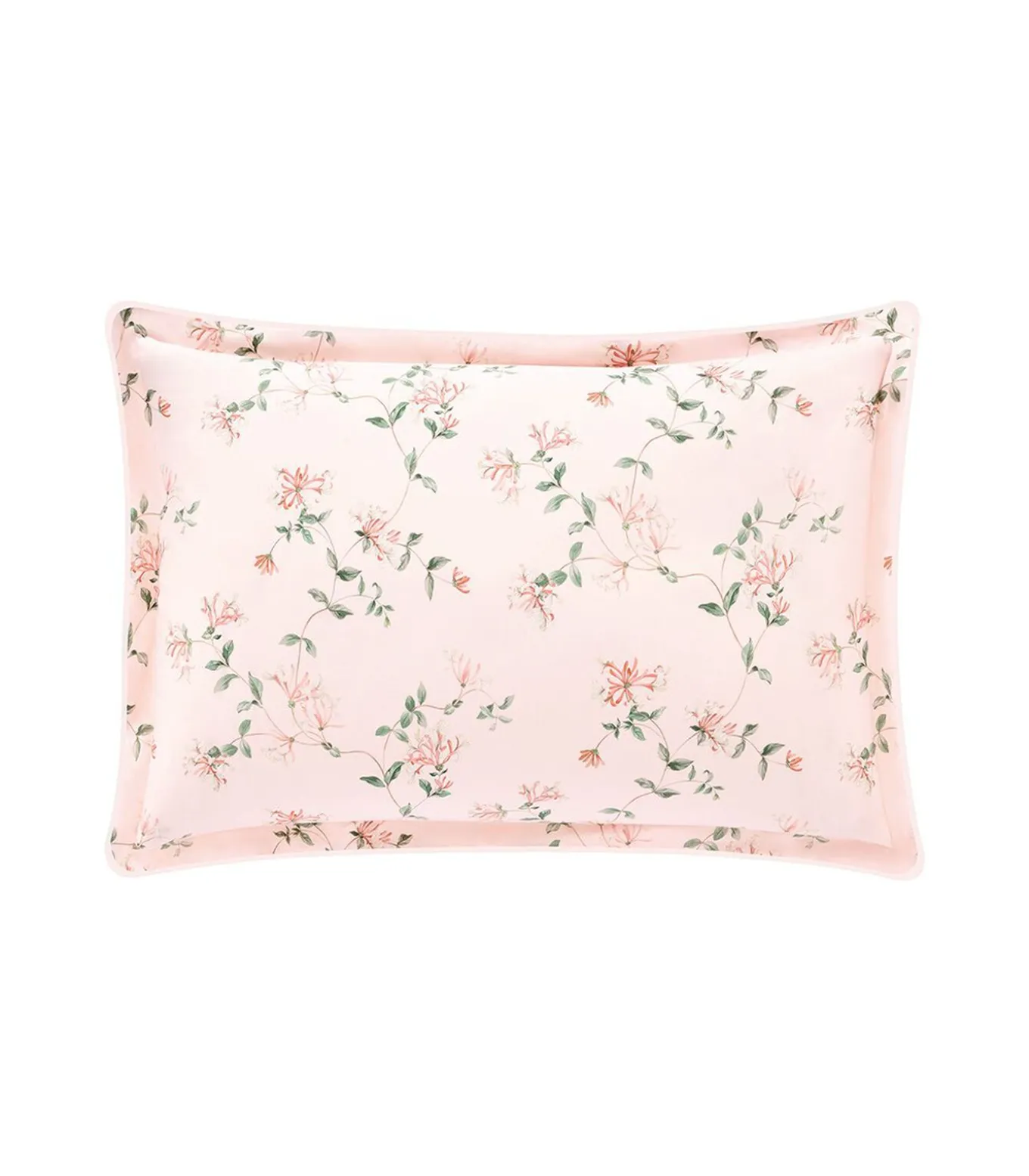 Print van kamperfoelie bloemen op poederroze achtergrondPrint van fijne verticale strepen op poederroze achtergrond