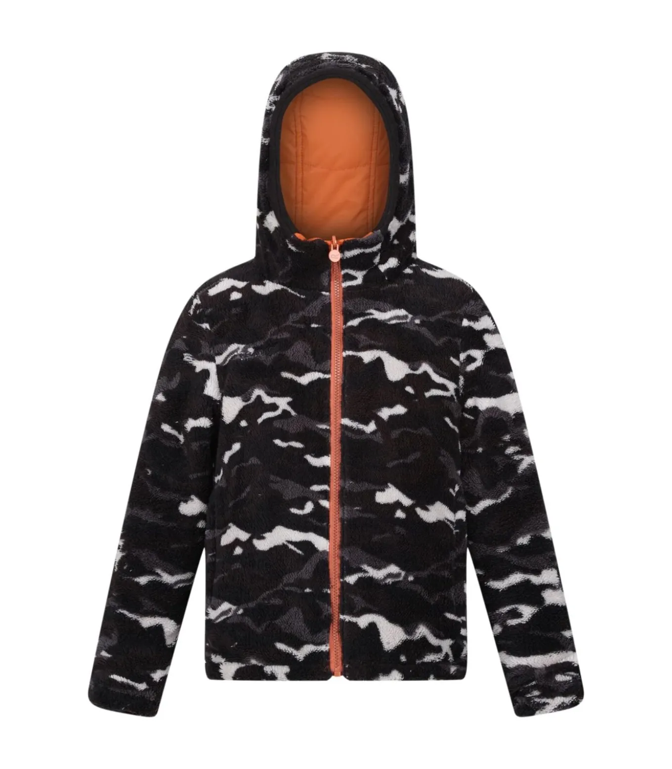 Deze technische beschrijving beschrijft een camouflage omkeerbaar kinderjack van Regatta. De jas heeft een 100% polyester constructie met een borg fleece soft touch buitenstof. De synthetische vezelvulling zorgt voor isolatie. De camouflageprint en het doorgestikte logo geven het ontwerp een detail. Met 200 gram per vierkante meter heeft de stof een duurzame waterafstotende afwerking waardoor hij sneldrogend, thermoregulerend, waterafstotend en weerbestendig is. De capuchon heeft lange mouwen met padding en reflecterende boorden. Uniek aan deze jas is dat hij omgekeerd kan worden. De vastgegroeide capuchon heeft stretchboorden voor comfort. Voor het opbergen zijn er twee zijzakken en twee onderzakken. De jas sluit met een volledige rits. Deze jas is gemaakt van gerecycled materiaal om duurzaamheid te ondersteunen.