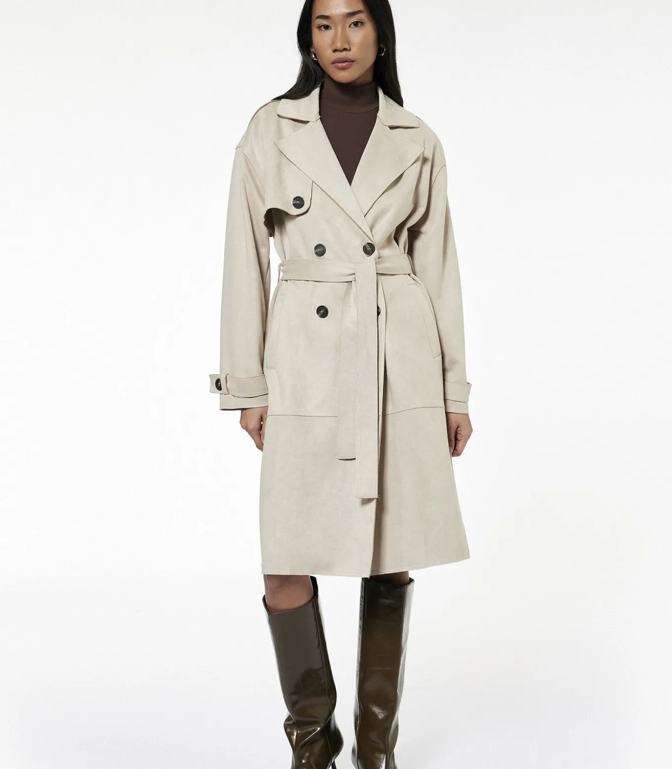 Be the first to review “Lange Dames Trenchcoat Knoopsluiting Ceintuur Kunstsuède” Reactie annuleren