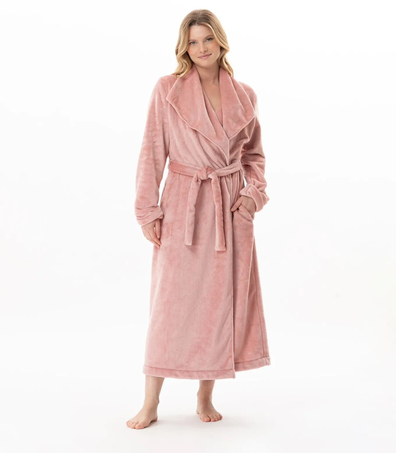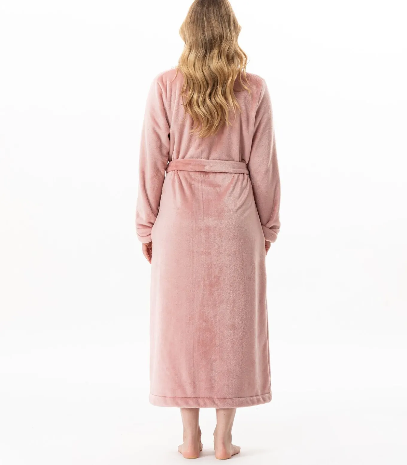 Lange gekruiste badjas van zachte flanellen stof ESSENTIEL 169