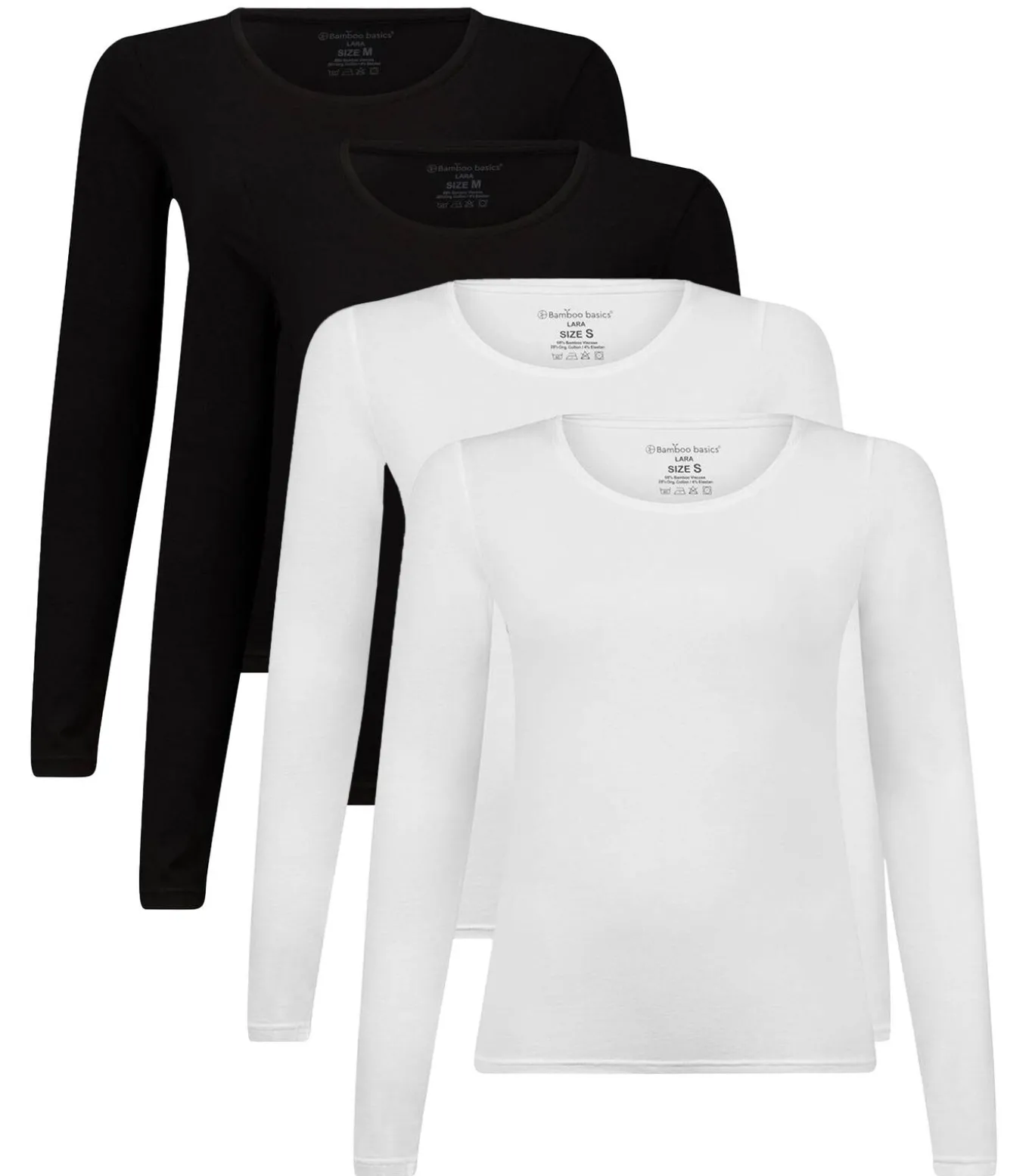 4 shirts met lange mouwen en ronde hals van het merk Bamboo basics gemaakt van zachte single jersey met viscose (gemaakt van bamboepulp) voor langdurig comfort. Ademend, antibacterieel en elastisch.