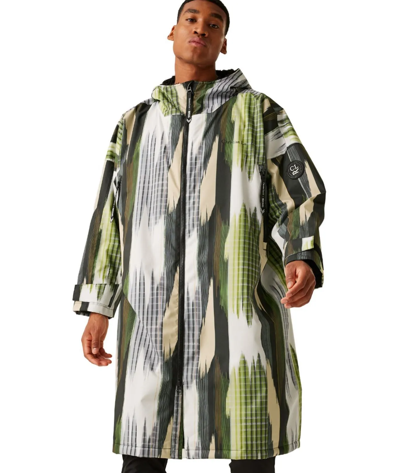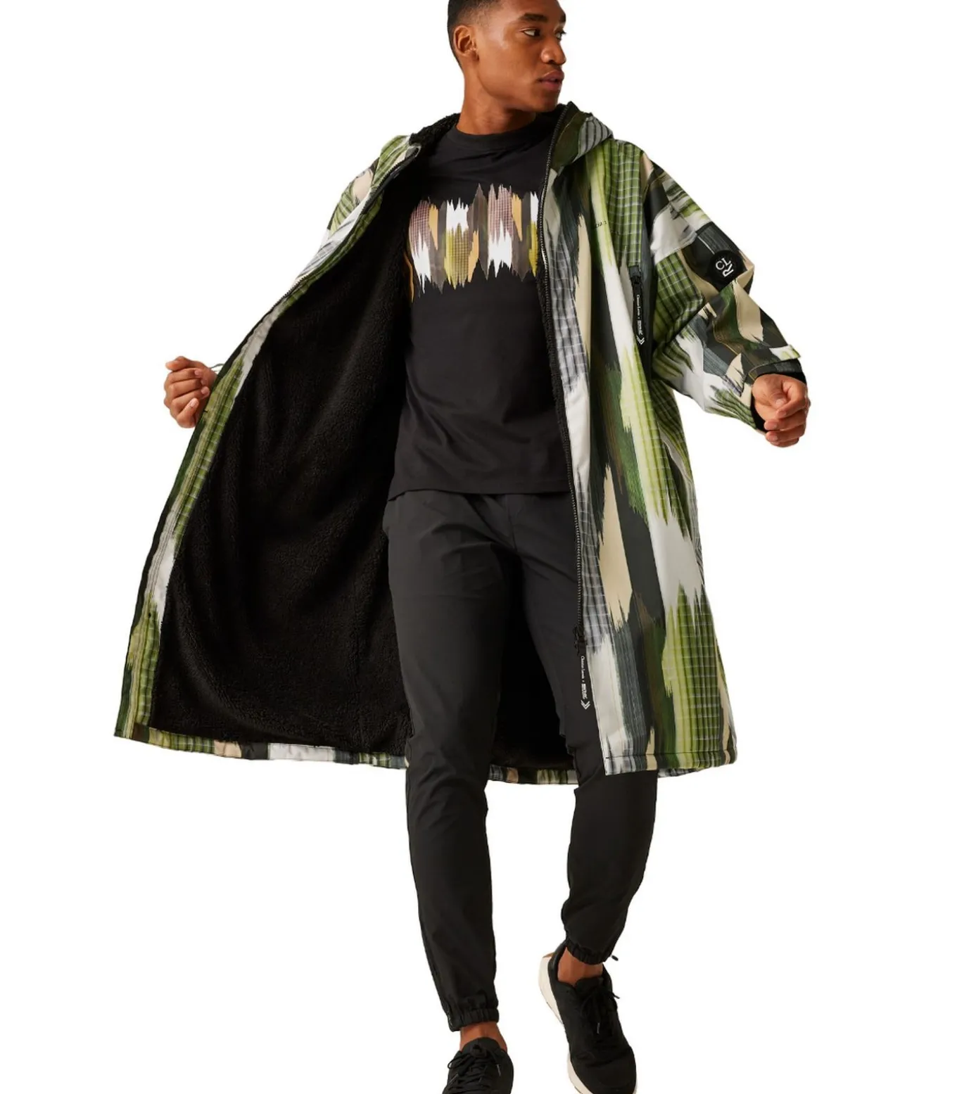 Regatta LEBOSC Gi Wit Jackoon heeft een hoge kwaliteit polyester–stof met een warm borgfleece–voering. Deze prestatie–stof is waterdicht en winddoorzichtig, voorzien van ademend, DWR finish, Isotex en waterdichte technologie. Het hechtdraadloos design bevat een kapiteinshalslijn, langarmen en zowel binnen als twee buitenzakken. De manchetten zijn verstelbaar en de naden zijn getapet. Bovendien groeit deze jas op de kap en wordt gemaakt van hergebruikt materiaal. Het product heeft een waterafstotende eigenschap van 15000g/m²/24hrs. De jas is volledig met ritssluitingen bevestigd.