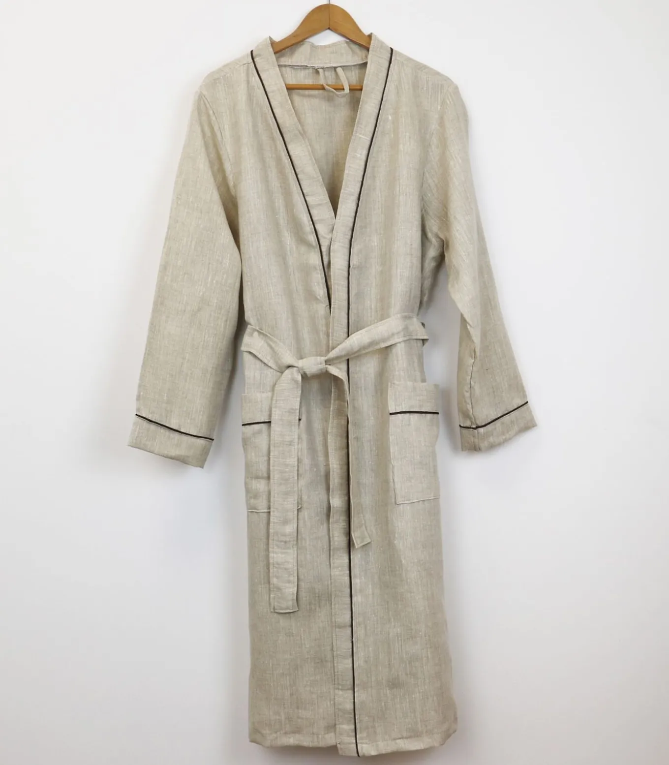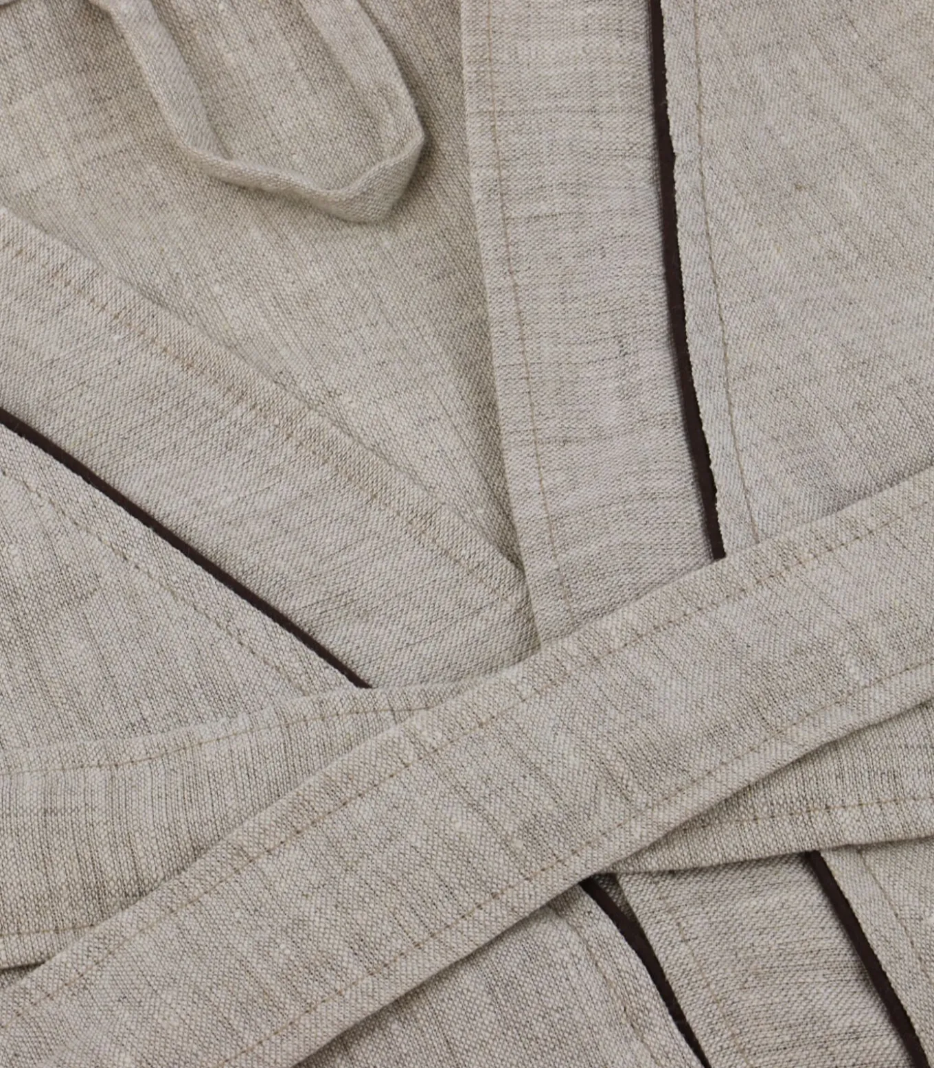 ALLURE badjas:. Ontdek deze linnen badjas van 220gr/m², gemaakt in Frankrijk in onze ateliers, van hoge kwaliteit en zeer comfortabel. Het verfijnde en chique ontwerp dankzij de kimoonokraag en de chocoladeafwerkingen. Zeer licht en comfortabel, de ALLURE badjas is de ideale metgezel voor uw weekenden en gezellige avonden thuis. Vind de maat die je nodig hebt: Maat 96 tot 100 cm, Maat L: Borst van 94 tot 98 cm en bekken van 100 tot 104 cm, Maat XL: Borst van 98 tot 102 cm en bekken van 104 tot 108 cm, Maat 2XL: Borst van 102 tot 106 cm en bekken van 108 tot 112 cm, maat 3XL: borst 106 tot 110 cm en bekken 112 tot 124 cm, maat 4XL: borst 110 tot 116 cm en bekken 124 tot 136 cm, maat 5XL: borst 116 tot 122 cm en bekken 136 tot 148 cm, maat 6XL: borst 122 tot 128 cm en bekken van 148 tot 160 cm, maat 7XL: borst van 128 tot 134 cm en bekken van 160 tot 172 cm, maat 8XL: borst van 134 tot 140 cm en bekken van 172 tot 184 cm, maat 9XL: borst van 140 tot 146 cm en bekken 184 tot 196 cm, maat 10XL: borst van 146 tot 152 cm en bekken van 196 tot 208 cm. Onderhoudsadvies: Koud inweken vereist vóór de eerste wasbeurt op 30°. Regelmatig machineonderhoud bij 30°. • Dit product met het label STANDARD 100 by OEKO–TEX® – certificaat nr. CQ 1102/4 IFTH volgt een gecertificeerd en gecontroleerd productieproces, met respect voor uw huid.