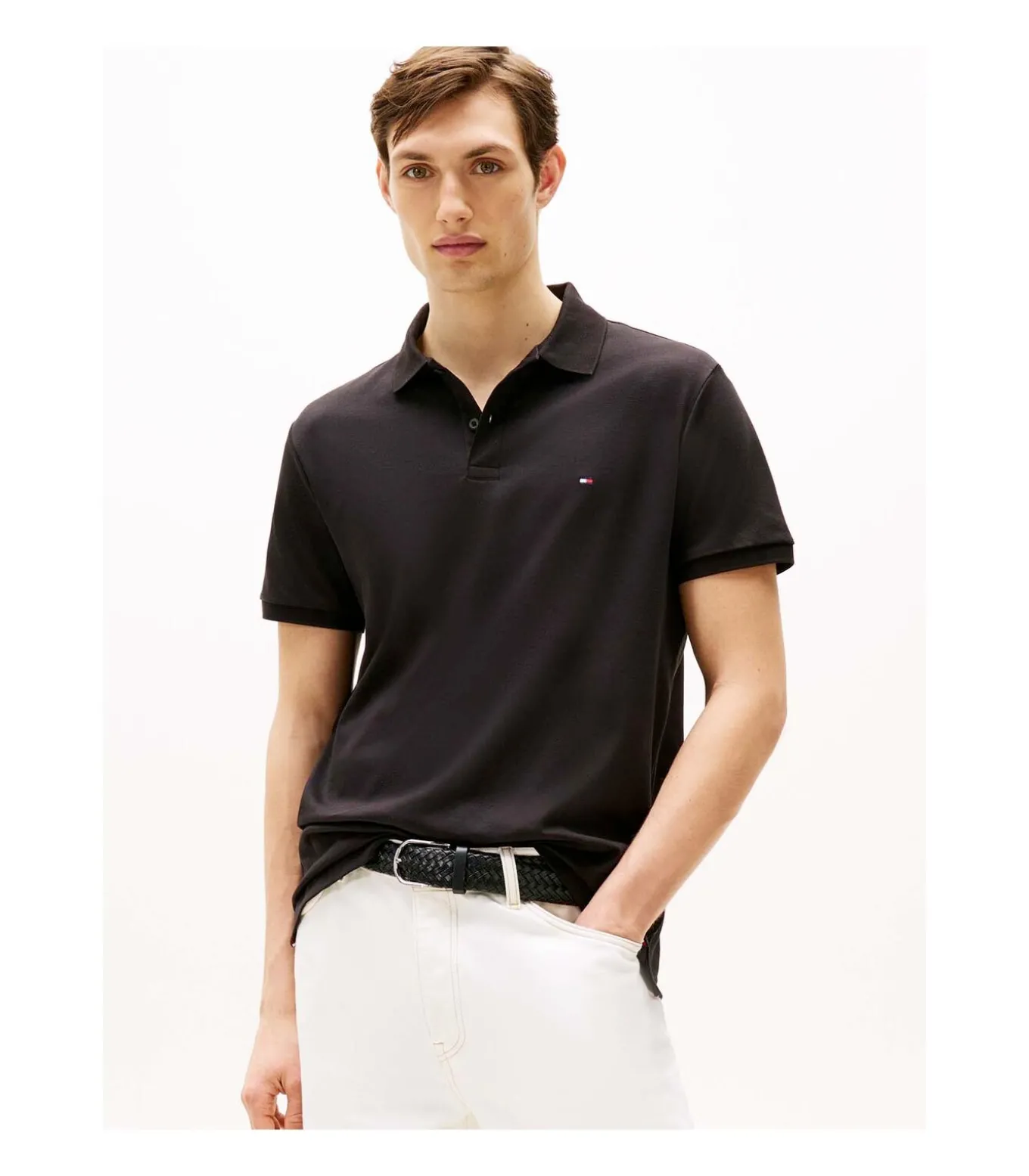 Kleur: Zwart Samenstelling: 100% katoen Mouwen: Kort Halslijn: Polokraag Pasvorm: Regular fit Sluiting: Twee knopen Details: Geborduurd logo op de borst, Tommy Hilfiger–bies Gebruik: Perfect voor een casual, verfijnde look met een sportieve touch