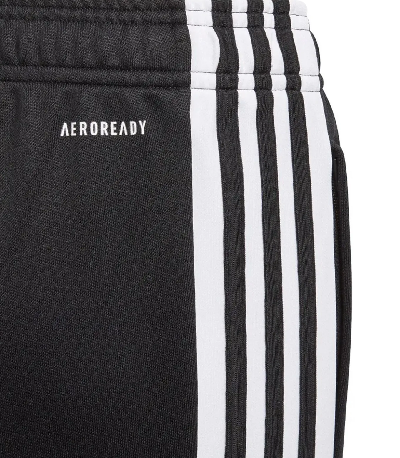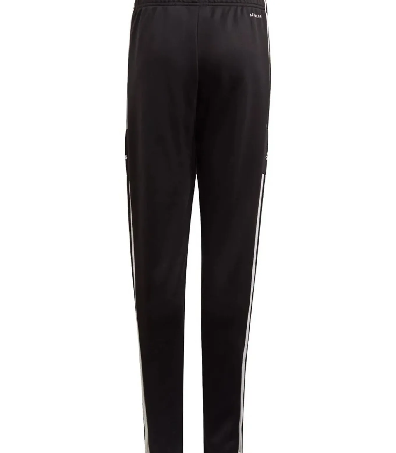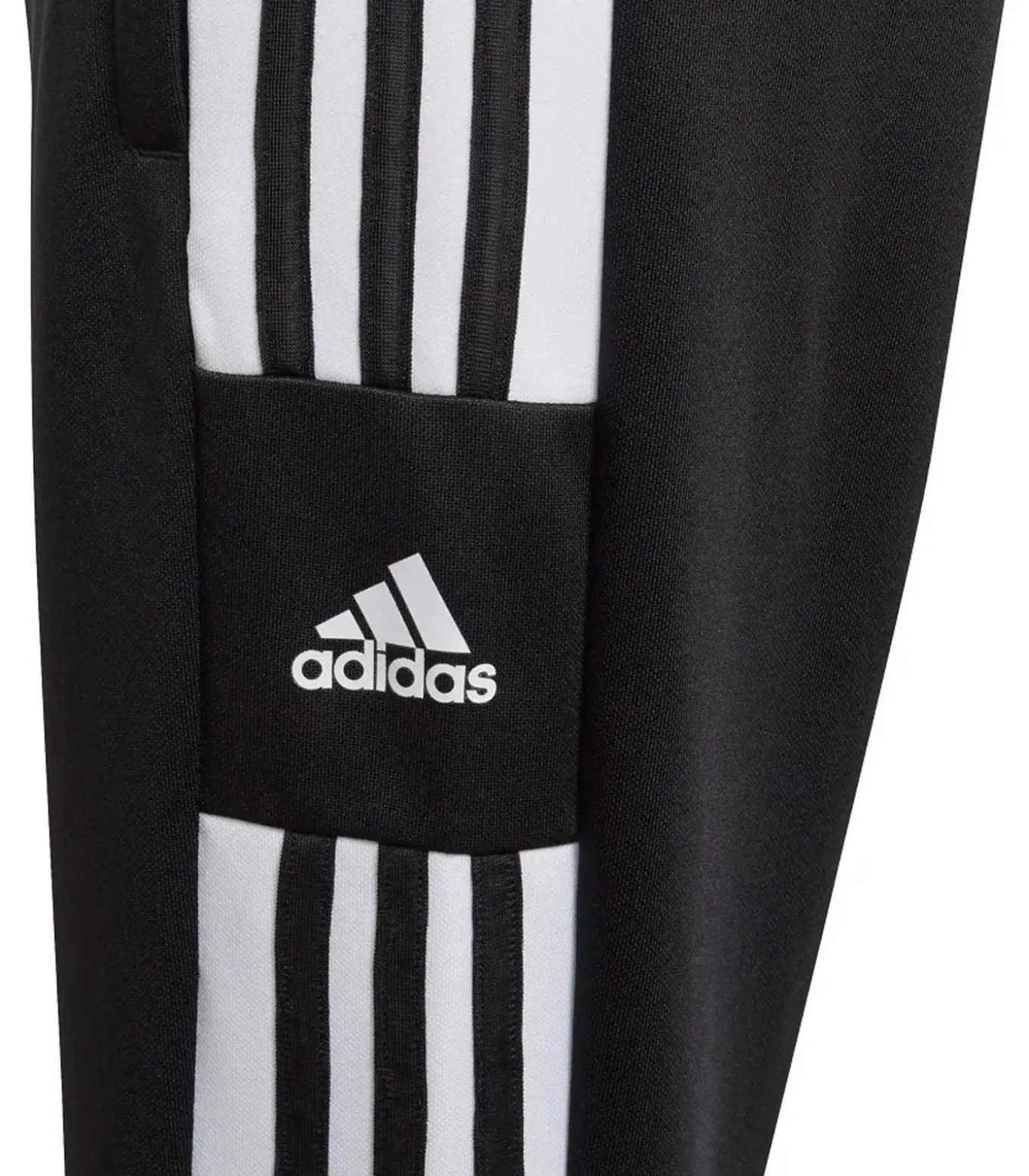 Adidas–merkken joggingbroek zwart met logo. Dit sportbroek is gemaakt van 100% polyester. Het ontwerp omvat een contraststreep en het logo van de merk. Er zijn rijen aan de enkels. Het broek beschikt over twee zijzakken met ritsen. De tailleband is elastisch en gemaakt van kordijn. Dit broek is geschikt voor losse lichamen.