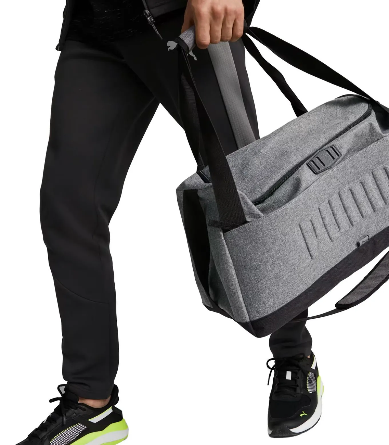Puma zwarte rugzak met Plunjezak logo, volledig gemaakt van polyester. De lengte is 54 centimeter, de hoogte is 24 centimeter en de breedte is 23 centimeter. Met een capaciteit van 30 liter biedt deze zak twee zijzakken, gaaszak, één voorzak en rits compartimenten. Het hoofdcompartiment is verstelbaar. De rugzak beschikt over schouderriemen, handgrepen, klittenband en een gevoerde onderkant. PU–inzetstukken zijn toegevoegd. Het ontwerp van de rugzak is in hoge reliëf gemaakt met het Plunjezak logo en gewoonterits. De rugzak is voorzien van een tweewegrijt om ze veilig vast te kunnen zetten.