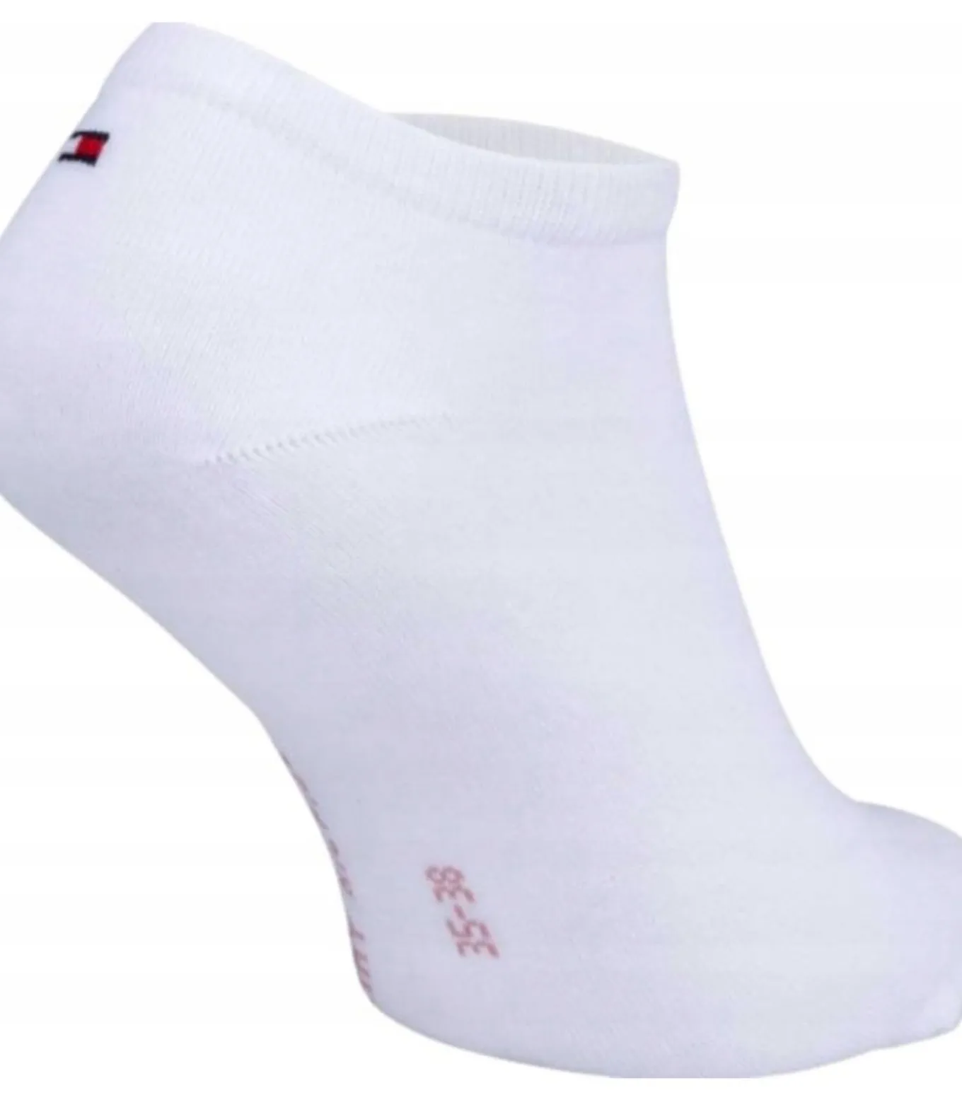 Tommy Hilfiger witte sokken met de bekende logo. Deze sokken bestaan uit 82% katoen, 17% polyamide en 1% elastaan. Het ontwerp is eenvoudig maar opvallend, met het gekende Tommy Hilfiger logo aanwezig. Het snijden is laag gesneden voor comfortabel gebruik. De manchet van de sokken is ribbel.