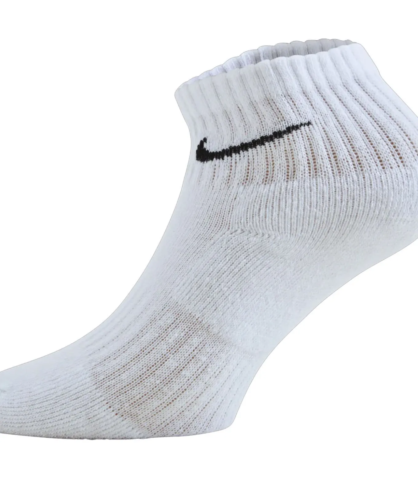 Nike Witte Sokken met Logo, gemaakt van 71% Katoen, 27% Polyester en 2% Elastaan. Dit model kent ontwerp met een Logo en is uitgerust met Dri–FIT en schokabsorberende stoftechnologie. Het product wordt gesmolten vervaardigd en bedoeld voor gebruik in het bad.