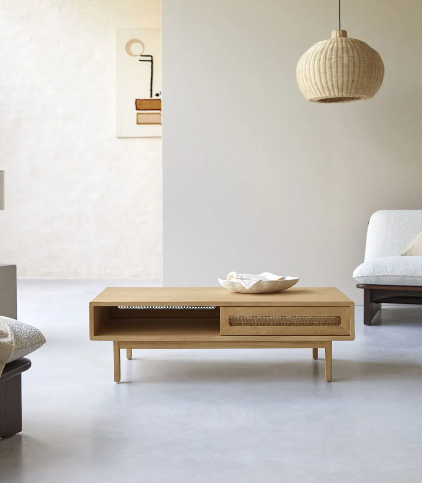 De Luis salontafel van massief iepenhout en riet: natuurlijk, tijdloos, design … met subtiele rieten details die het verschil maken!Het middelpunt van de woonkamer, een tafel die perfectie van materialen en details uitstekent associeert: Het hout is edel en karaktervol, en wordt traditioneel in elkaar gezet met een tandverbinding. Ideaal in combinatie met de andere onderdelen uit de Luis collectie maar past ook heel goed bij de meubels uit onze Néo Ethnique collectie. Door zijn lichte kleur en zuivere lijnen kan het worden gecombineerd met elke interieurstijl.De salontafel van massief iepenhout en riet is vooraf behandeld met beschermende olie.