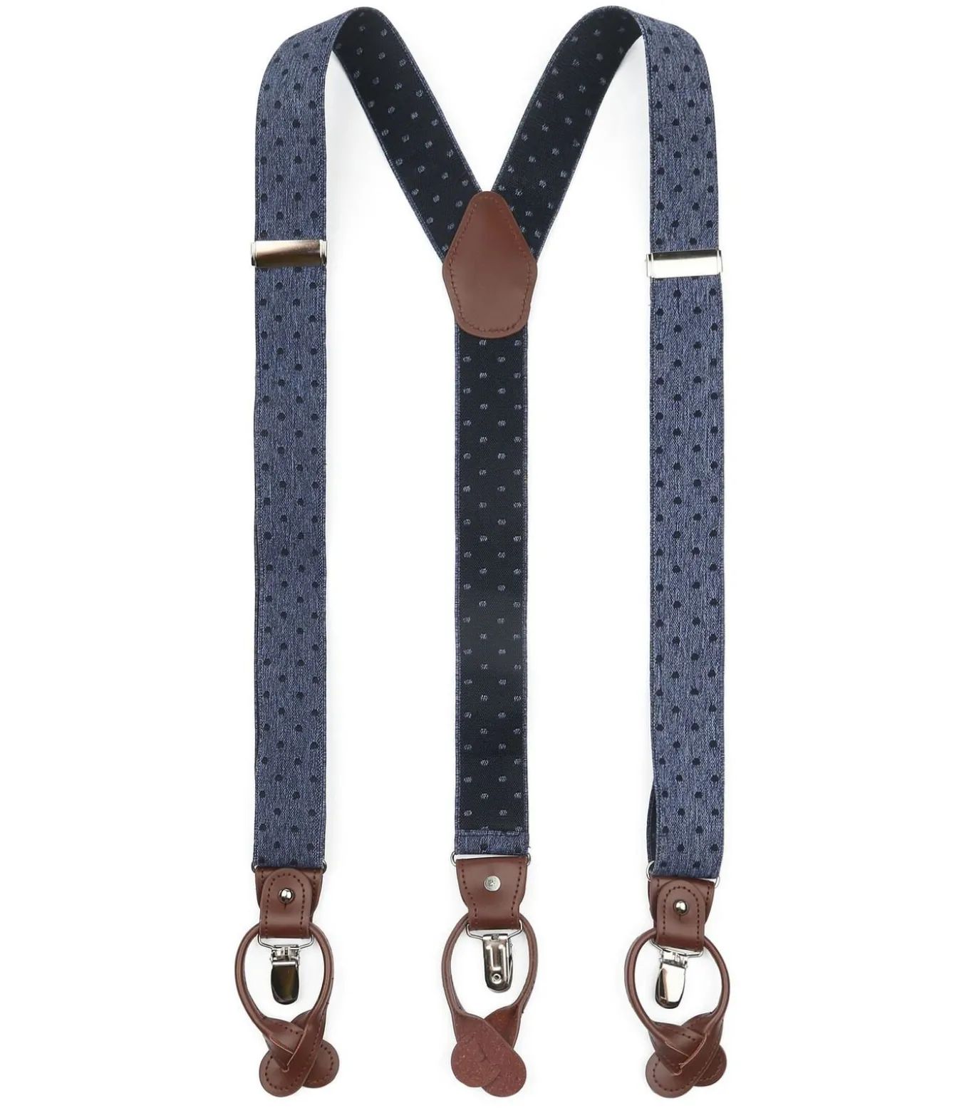 De bretels van Suitable zijn ontworpen om jouw outfit een extra trendy touch te geven. De bretel heeft een Y–model en zowel leertjes (patten) als klemsluitingen, deze kun je verwijderen zodat je de bevestiging naar keuze kunt dragen. De bretels zijn naar wens te verstellen. Y–vormDonkerblauwe kleur3,5 cm breed110 cm langLussen met knoopsgat en klemsluitingBretels worden geleverd in een luxe verpakkingGemakkelijk in te korten