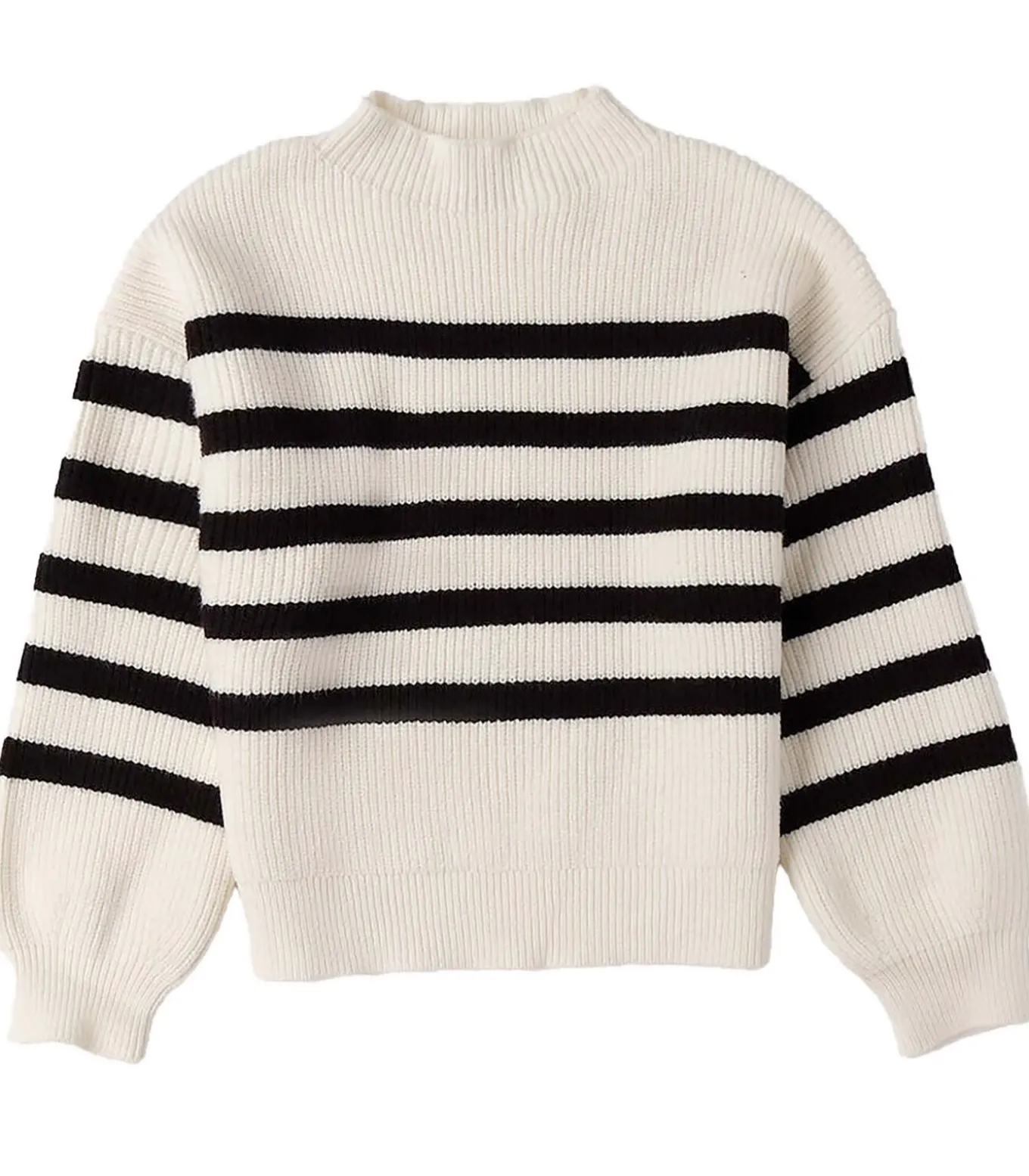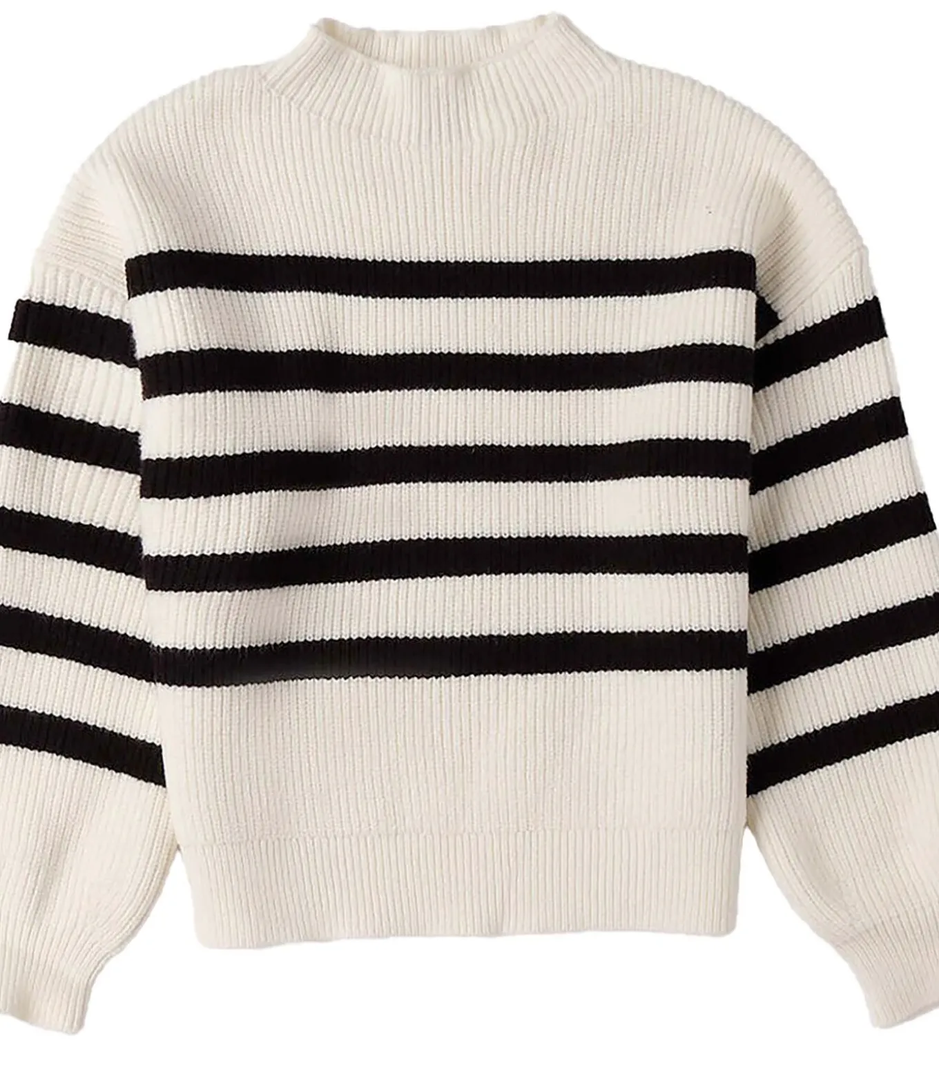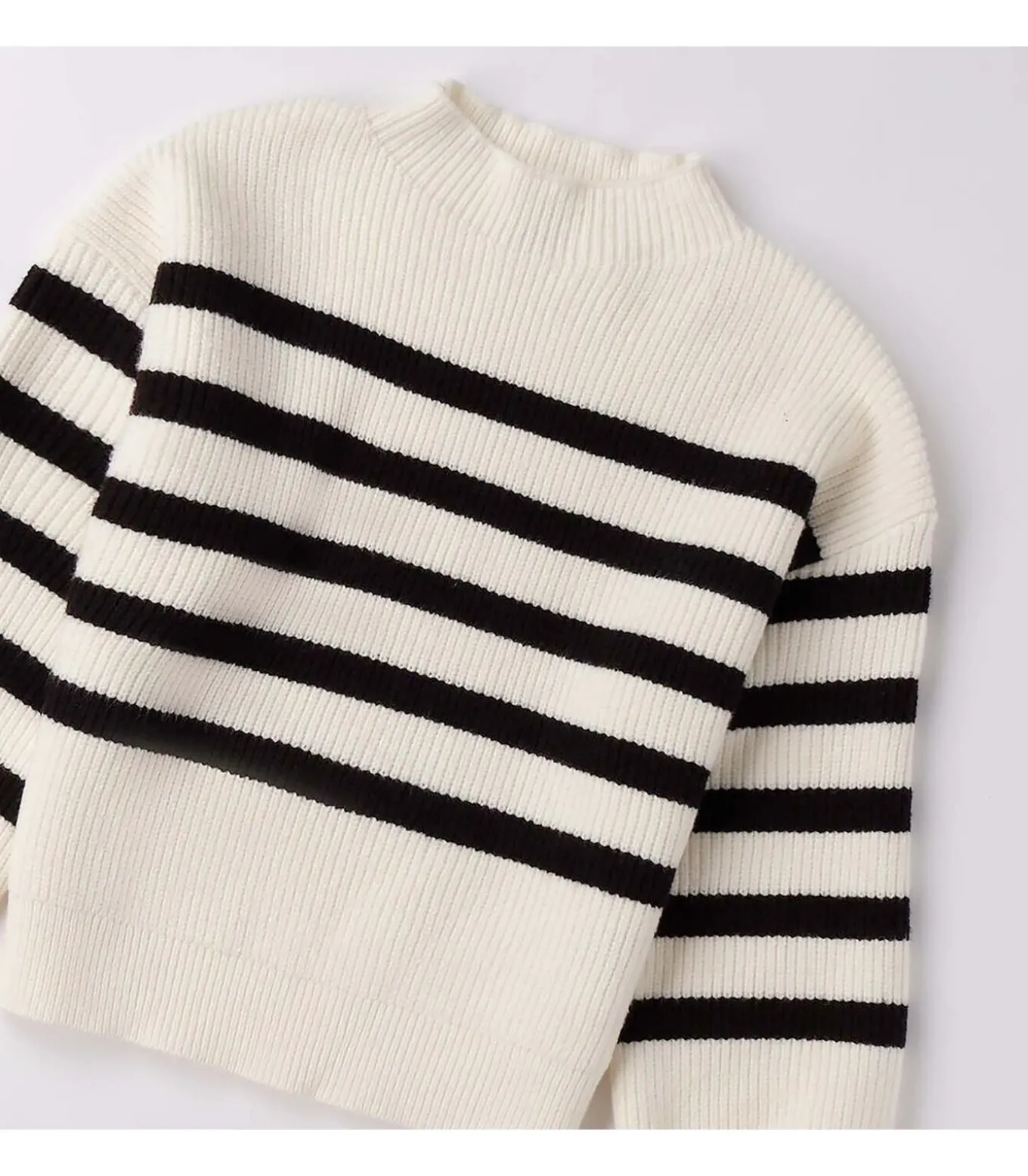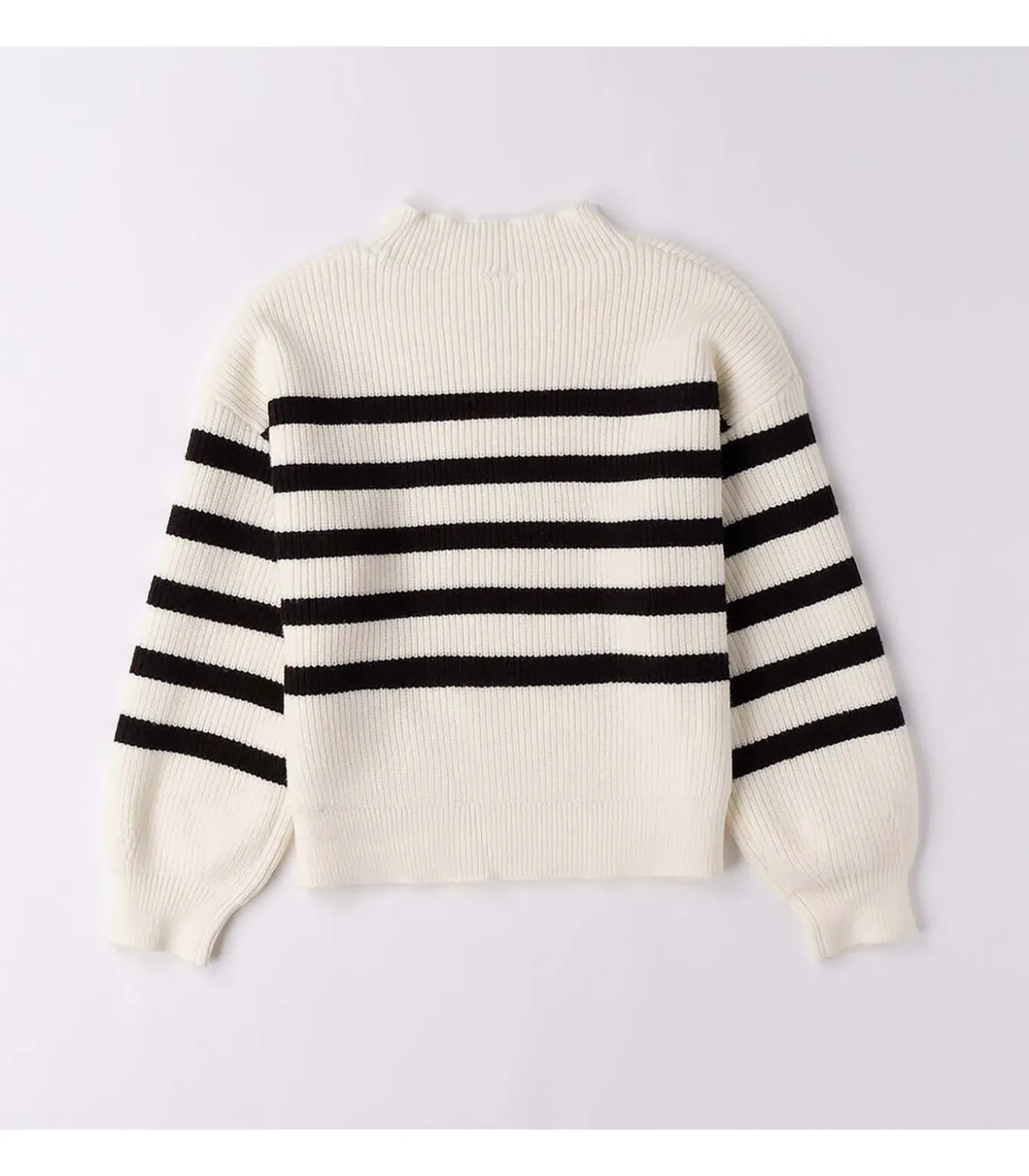Kleur: Off White Samenstelling: 39% viscose, 37% polyamide, 23% polyester, 1% elastaan Mouwen: Lang Halslijn: Ronde hals Details: iDO trui voor meisjes van 8–16 jaar, gemaakt van gestreept stretchtricot. Zacht en comfortabel, met een zwart streepjespatroon op een lichte achtergrond en iets wijdere mouwen voor een moderne look. Gebruik: Perfect voor school, vrije tijd en koele dagen. Gemakkelijk te combineren met een jeans of pantalon voor casual en veelzijdige outfits.