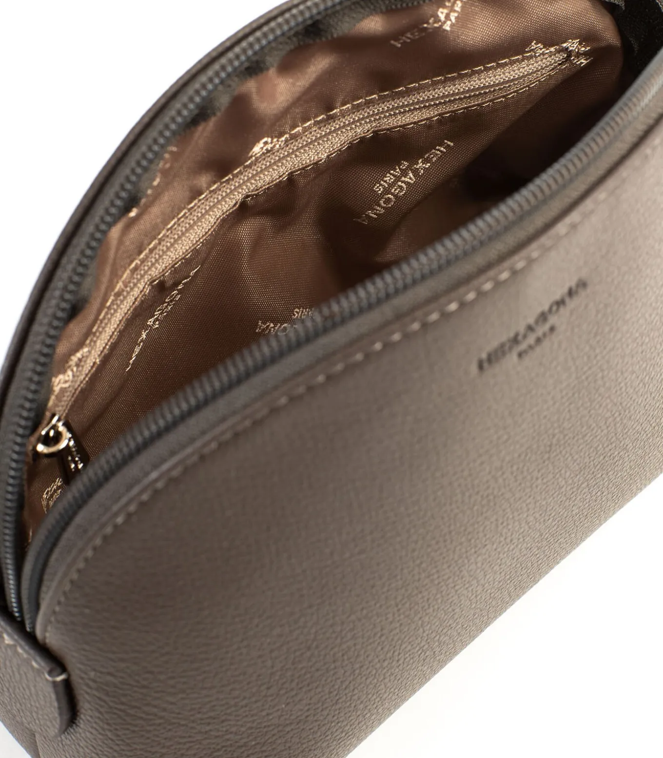 Interieur: 1 telefoonvak. 1 hoofdvak. 1 platte zak met ritssluiting.