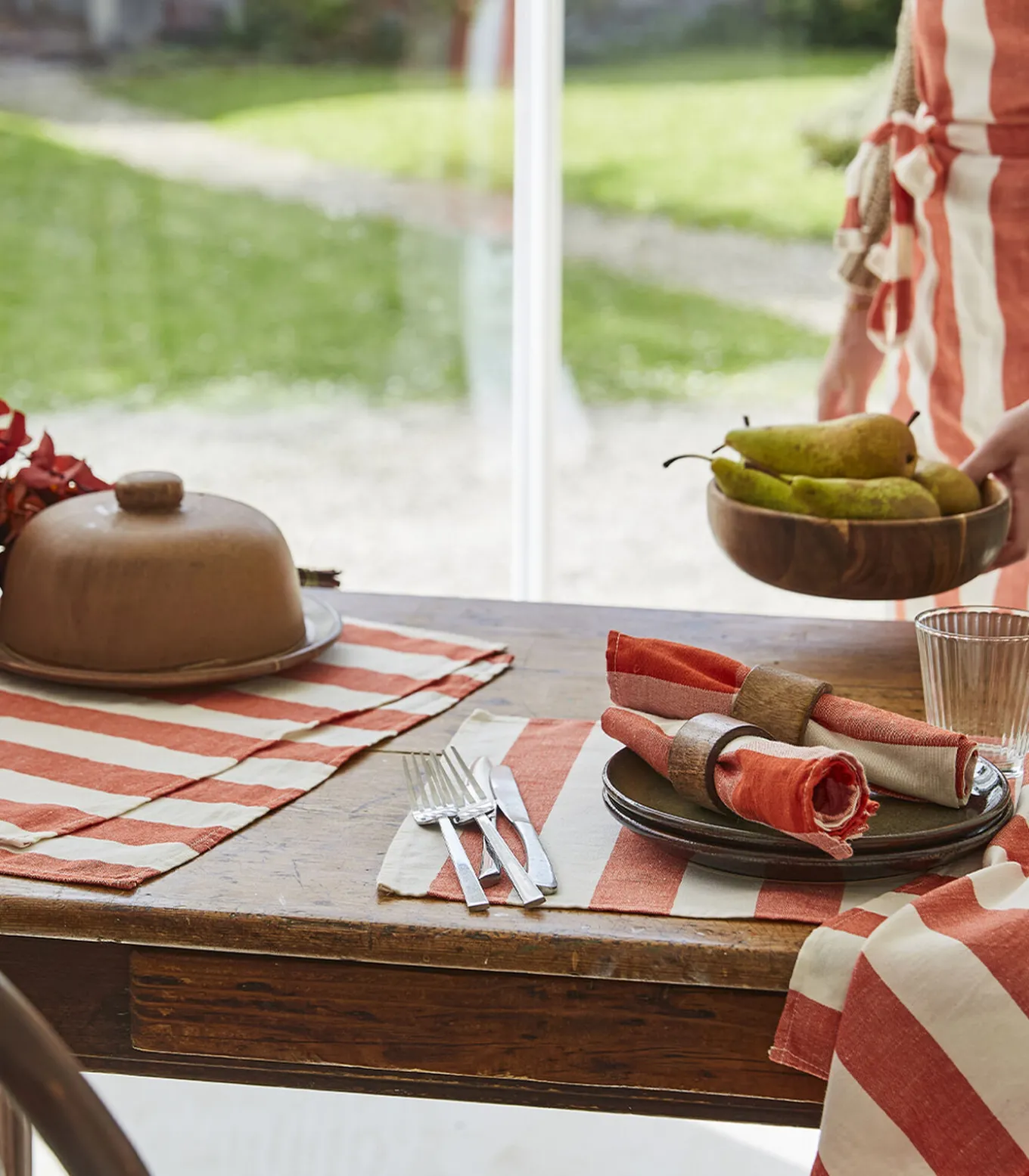 De handdoek Malo is gemaakt van een mix van katoen en linnen en is aangenaam zacht en bijzonder stevig, ideaal voor uw familiemaaltijden. De tijdloze en altijd elegante verticale streep op de handdoek Malo zorgt voor een stijlvol accent bij uw tafel. De levendige kleuren van de strepen en de rand geven deze handdoek een vintage uitstraling die moeiteloos samengaat met een effen tafelkleed voor een levendig, dynamisch effect.