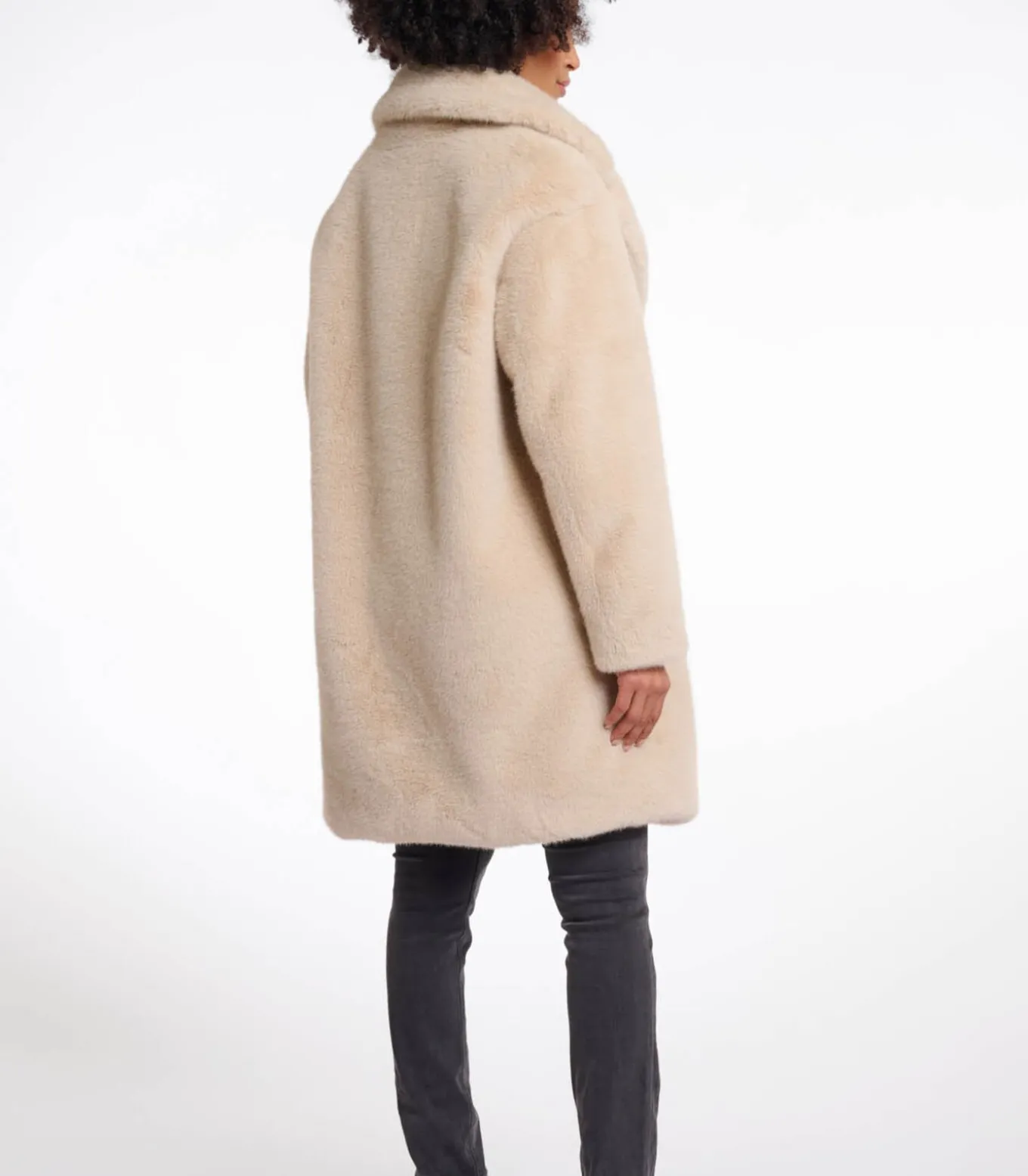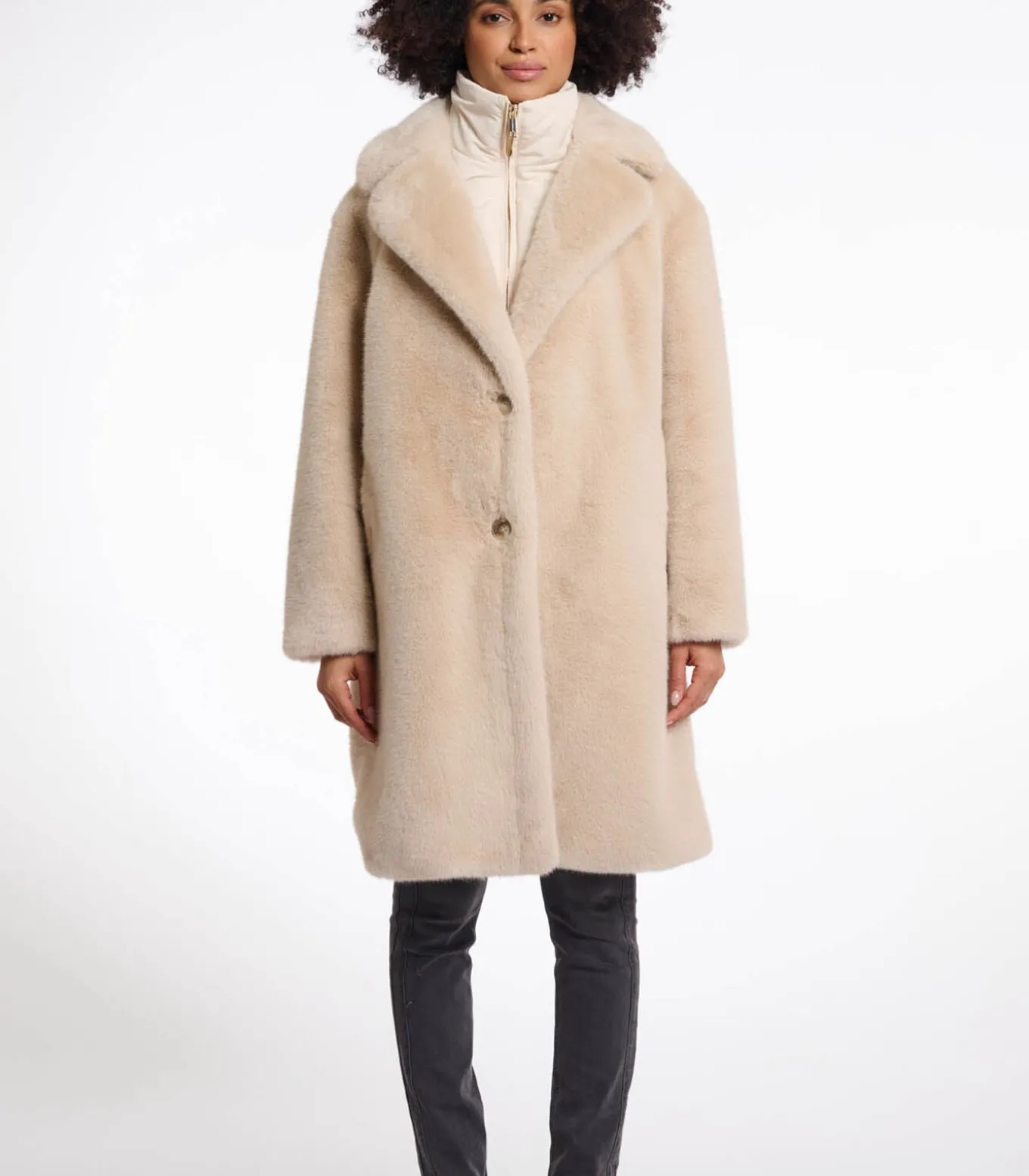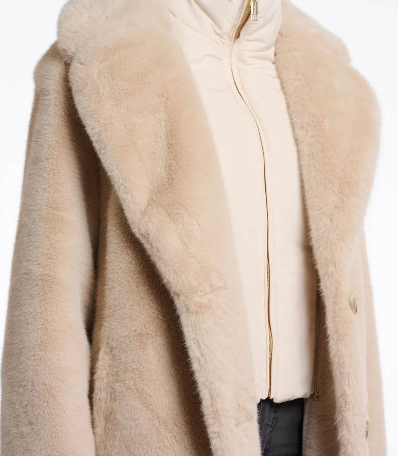Mantel van imitatiebont met enkele borst en afneembare kraag Licht haver 36