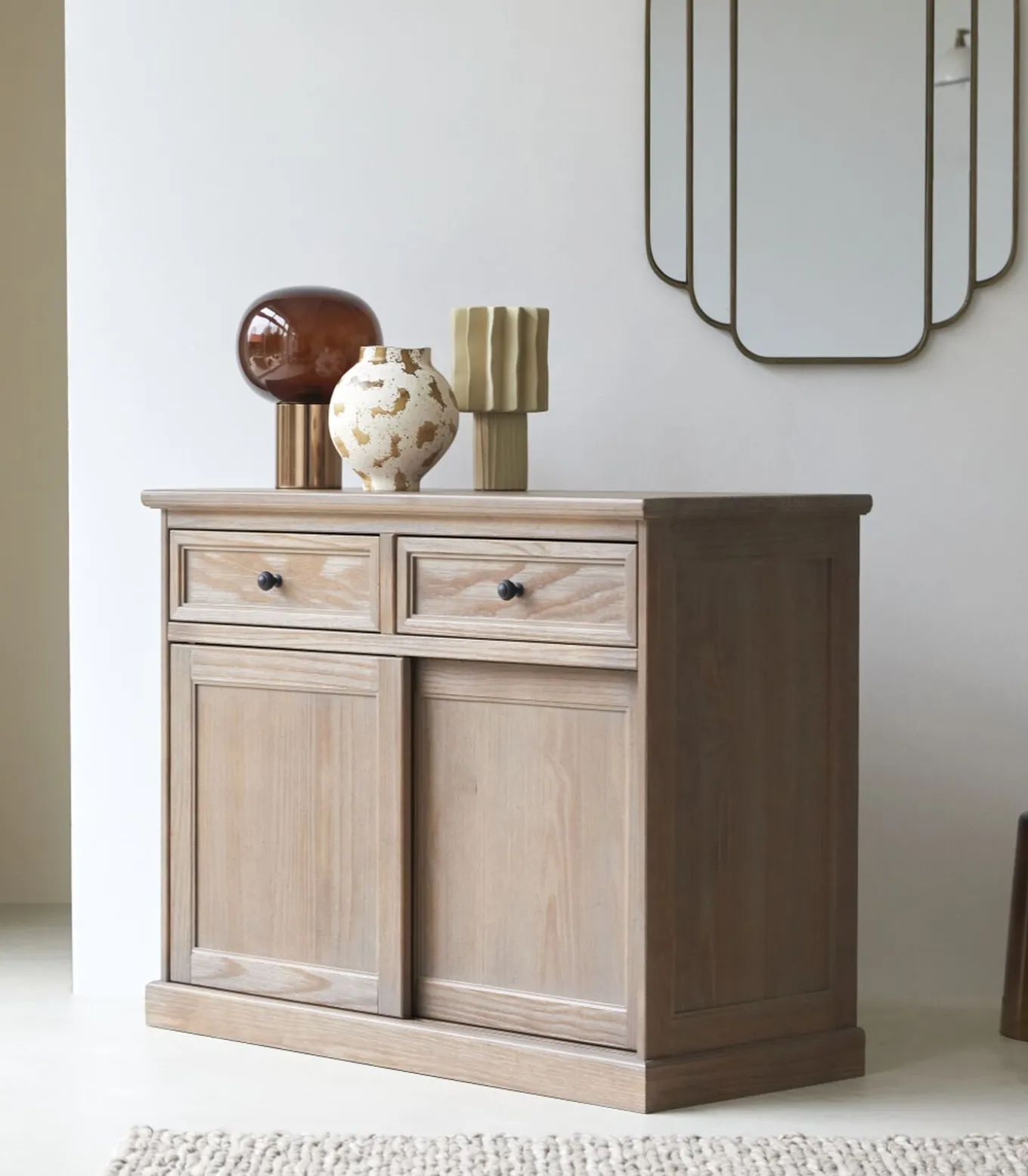 *2 schuifdeuren – niveaus: H x B x D cm * 2 lades – niveaus: H x B x D cm