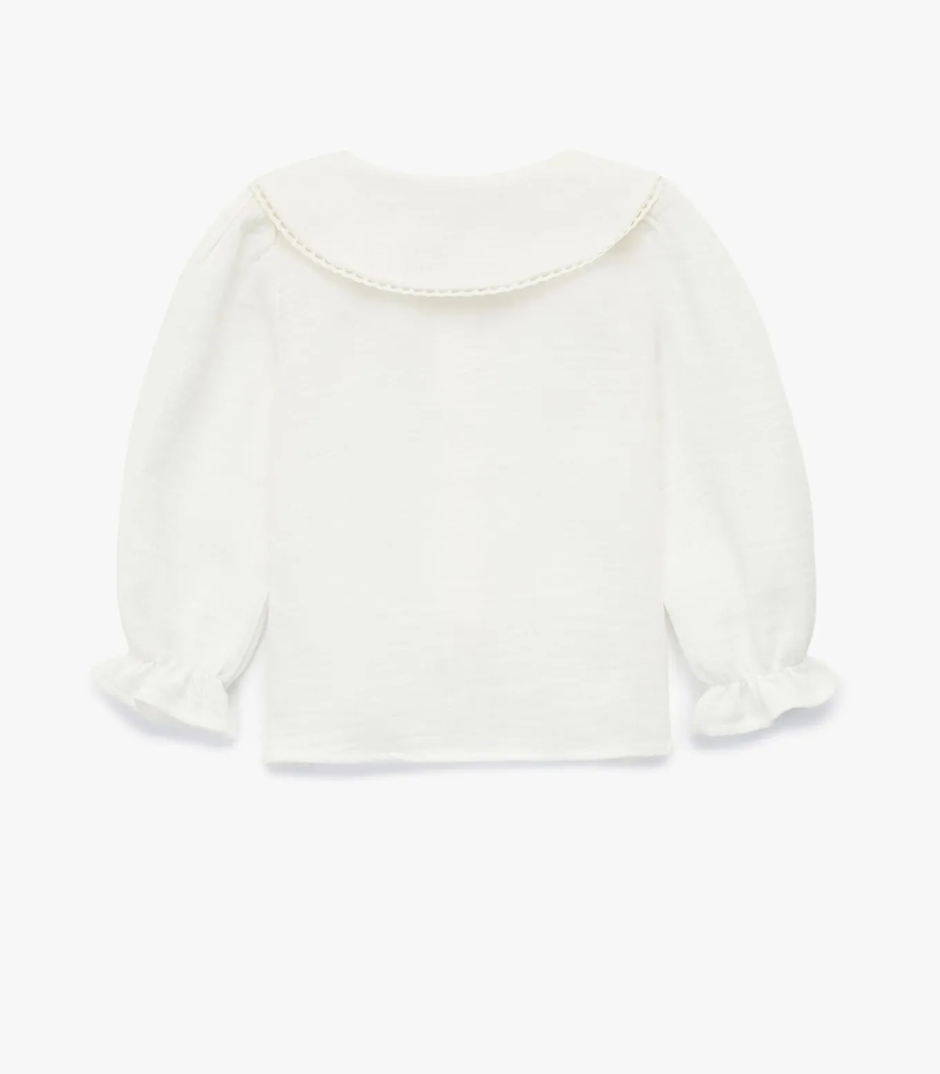 Deze schattige meisjesblouse voegt een vleugje elegantie toe aan elke outfit. Gemaakt van zacht katoen voor comfort en duurzaamheid. De lange mouwen en de gebeide kraag met bloemen zorgen voor een klassieke uitstraling. Perfect voor dagelijks gebruik dankzij de praktische knoopsluiting.